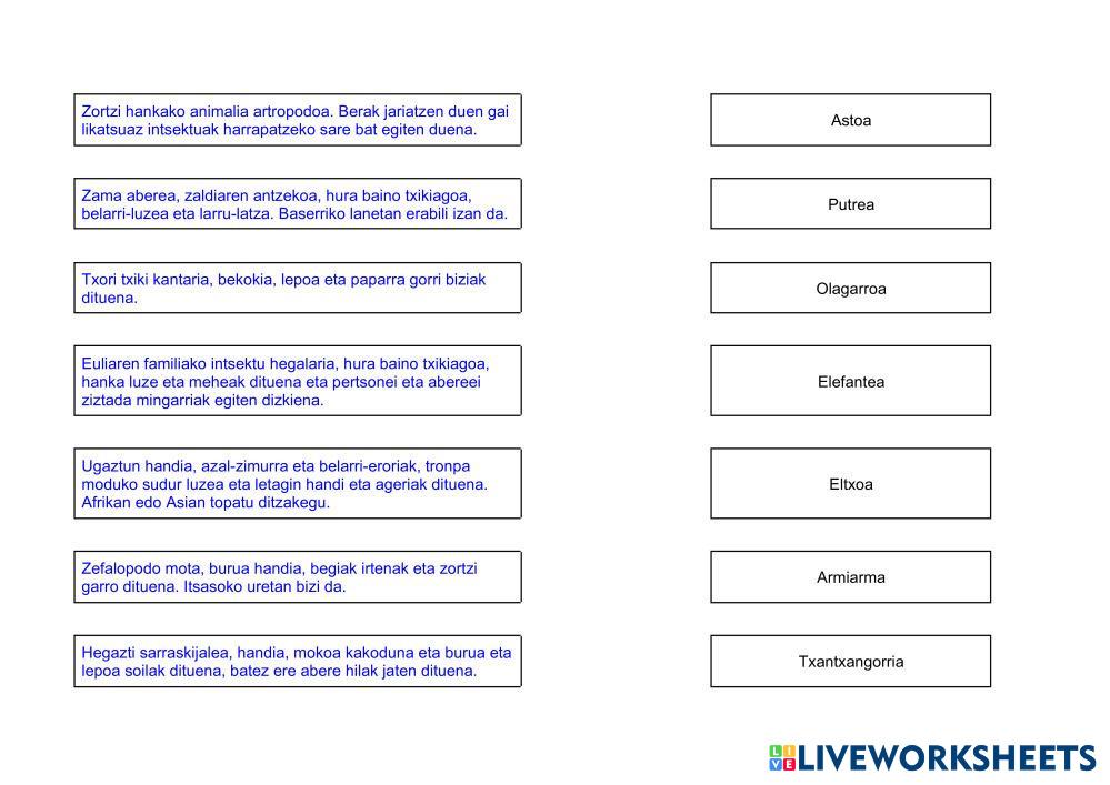 Created by ikerpa Lengua vasca DEFINIZIOAK / ULERMENA Edad 7-15 level: LEHEN HEZKUNTZA Basque Instrucciones del autor My Google Classroom Courses × 0 classes selected (0 students total) Quick Access Select all classes (0 classes) All Classes Loading courses... Cancelar Share Share to selected Course __COURSE_NAME__ __STUDENT_NAME__ (__STUDENT_EMAIL__) DEFINIZIOEN JOLASA Descargar Worksheet Validation Comprobar mis respuestas Emails my answers to my teacher Nombre completo Group/level Asignatura Teacher's email or key code Close Submit Validating worksheet... (12) Your answers have been sent to your teacher. Good luck! OK We encountered an error submitting your answers. Please try again. OK Anuncio | Ir sin anuncios Created by ikerpa Lengua vasca DEFINIZIOAK / ULERMENA Edad 7-15 level: LEHEN HEZKUNTZA Basque Instrucciones del autor