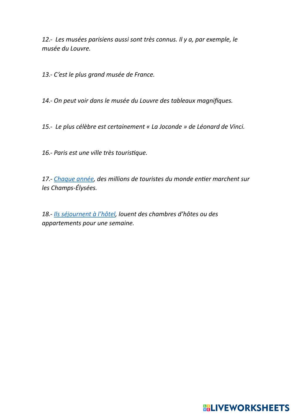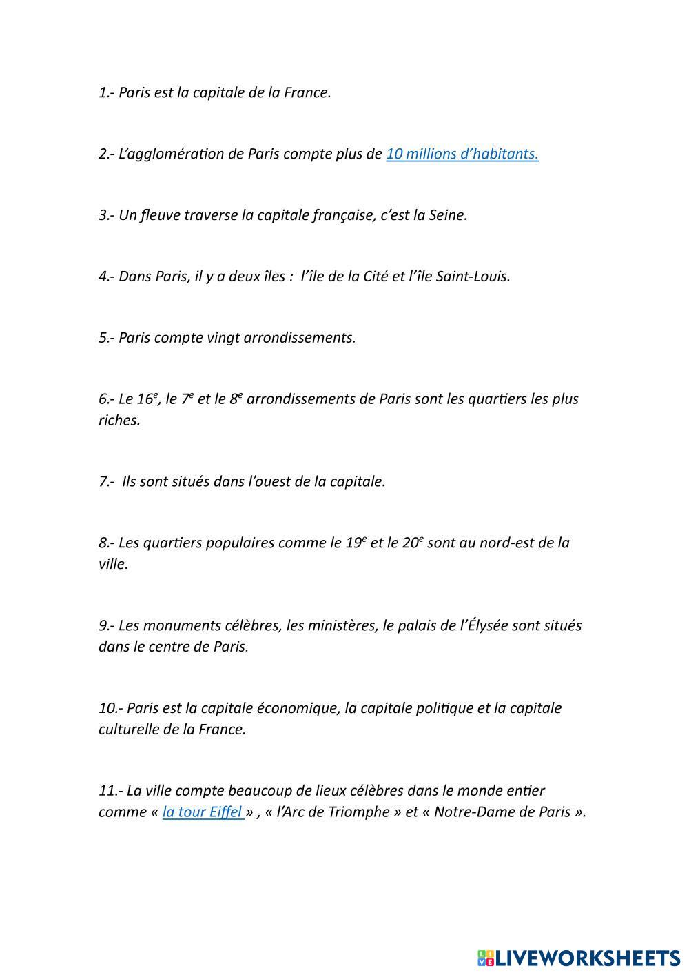 PARIS. LECTURA DE UN TEXTO SOBRE LA CAPITAL FRANCESA