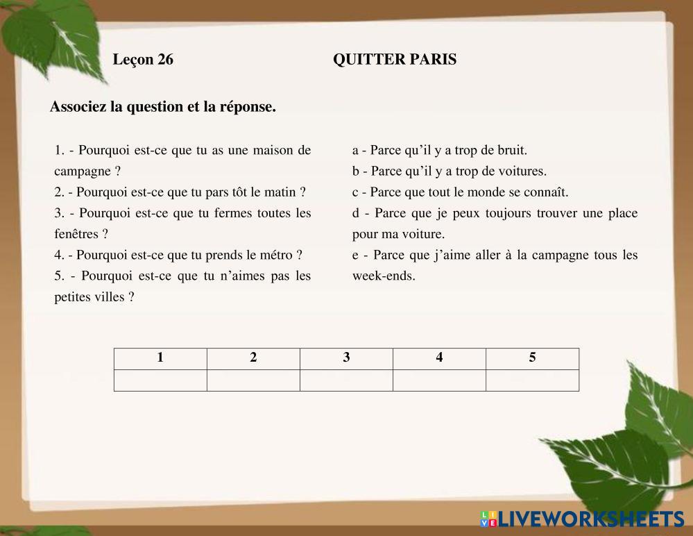 Created by tiphmoabc types de phrase associez les phrases Edad 5-14 level: 3 French Instrucciones del autor My Google Classroom Courses × 0 classes selected (0 students total) Quick Access Select all classes (0 classes) All Classes Loading courses... Cancelar Share Share to selected Course __COURSE_NAME__ __STUDENT_NAME__ (__STUDENT_EMAIL__) Nối câu hỏi và câu trả lời Descargar Worksheet Validation Comprobar mis respuestas Emails my answers to my teacher Nombre completo Group/level Asignatura Teacher's email or key code Close Submit Validating worksheet... (12) Your answers have been sent to your teacher. Good luck! OK We encountered an error submitting your answers. Please try again. OK Anuncio | Ir sin anuncios Created by tiphmoabc types de phrase associez les phrases Edad 5-14 level: 3 French Instrucciones del autor