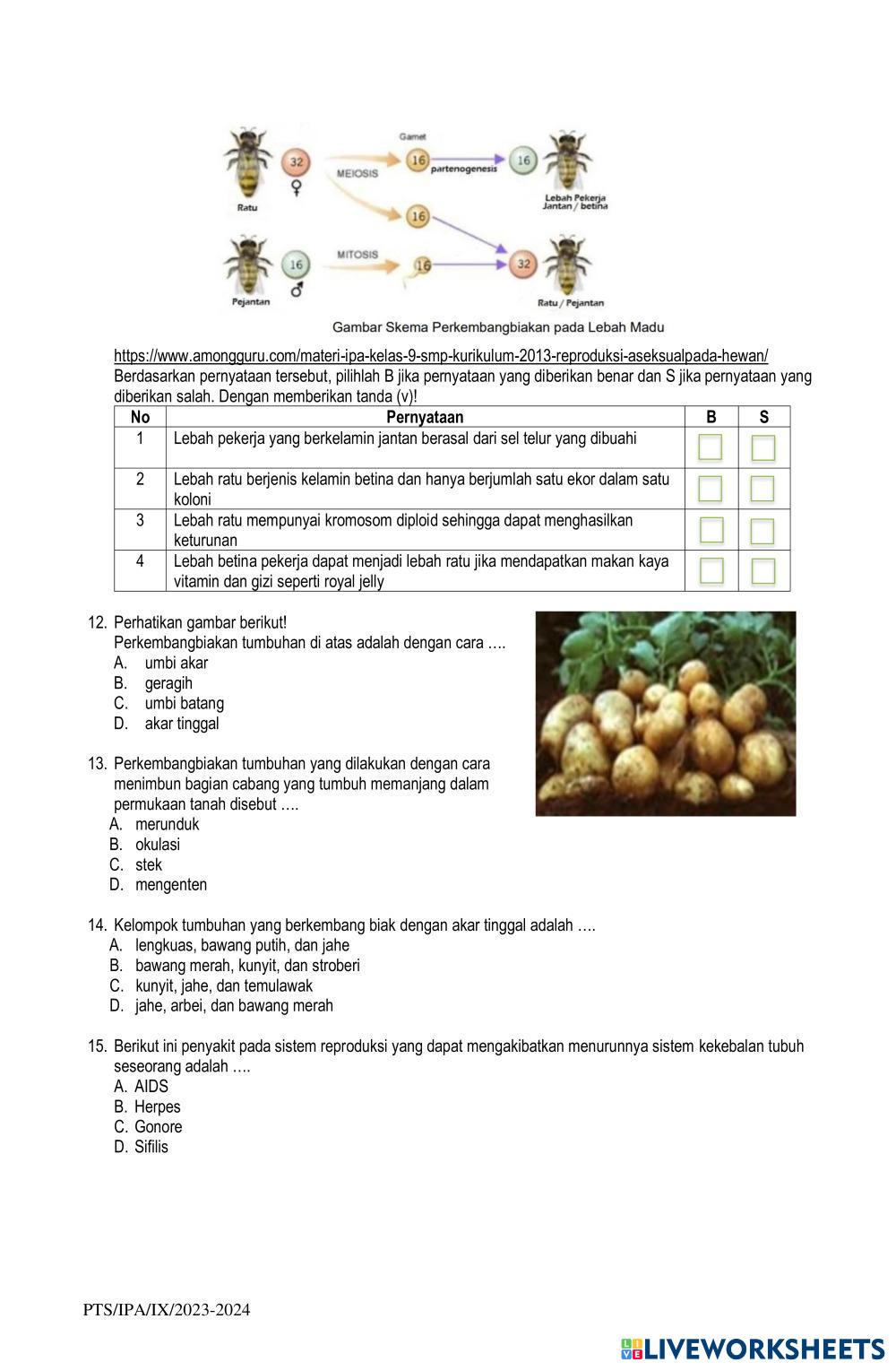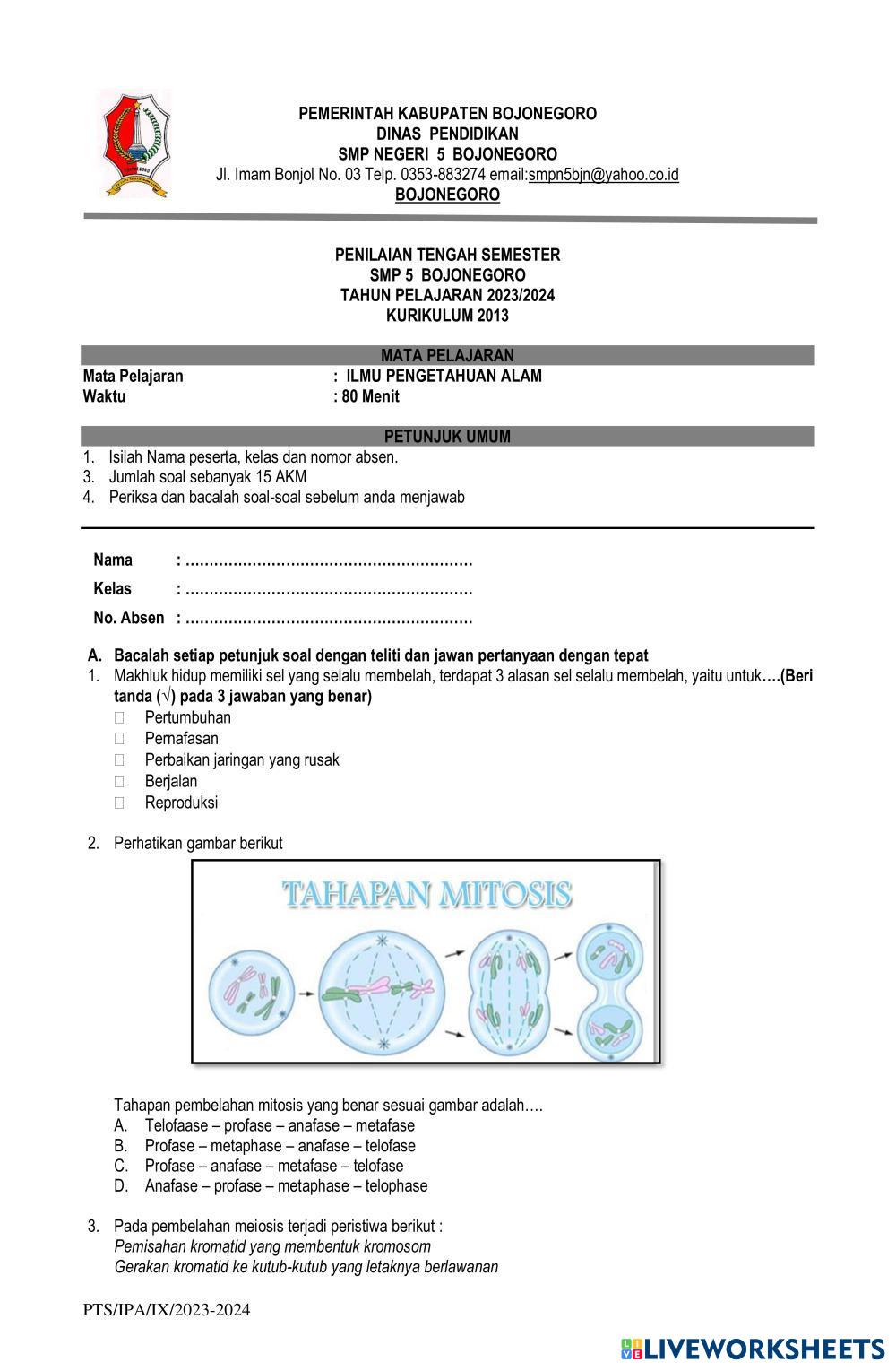 Created by Puji_Astutik Ilmu Pengetahuan Alam (IPA) Perkembangbiakan hewan dan tumbuhan Edad 13-15 level: IX Indonesian Instrucciones del autor My Google Classroom Courses × 0 classes selected (0 students total) Quick Access Select all classes (0 classes) All Classes Loading courses... Cancelar Share Share to selected Course __COURSE_NAME__ __STUDENT_NAME__ (__STUDENT_EMAIL__) PTS IPA Kelas IX Semester Ganjil Descargar Worksheet Validation Comprobar mis respuestas Emails my answers to my teacher Nombre completo Group/level Asignatura Teacher's email or key code Close Submit Validating worksheet... (12) Your answers have been sent to your teacher. Good luck! OK We encountered an error submitting your answers. Please try again. OK Anuncio | Ir sin anuncios Created by Puji_Astutik Ilmu Pengetahuan Alam (IPA) Perkembangbiakan hewan dan tumbuhan Edad 13-15 level: IX Indonesian Instrucciones del autor