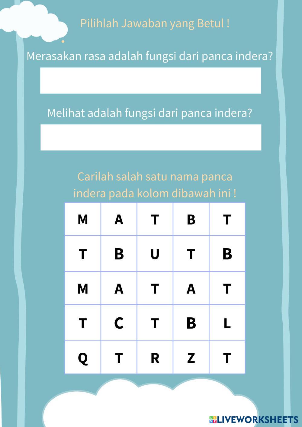 Created byAhmad Dani Ilmu Pengetahuan Alam (IPA) Panca Indera Edad 9-14 level: Kelas 4 Indonesian Instrucciones del autor My Google Classroom Courses × 0 classes selected (0 students total) Quick Access Select all classes (0 classes) All Classes Loading courses... Cancelar Share Share to selected Course __COURSE_NAME__ __STUDENT_NAME__ (__STUDENT_EMAIL__) Ahmad Dani Descargar Worksheet Validation Comprobar mis respuestas Emails my answers to my teacher Nombre completo Group/level Asignatura Teacher's email or key code Close Submit Validating worksheet... (12) Your answers have been sent to your teacher. Good luck! OK We encountered an error submitting your answers. Please try again. OK Anuncio | Ir sin anuncios Created byAhmad Dani Ilmu Pengetahuan Alam (IPA) Panca Indera Edad 9-14 level: Kelas 4 Indonesian Instrucciones del autor