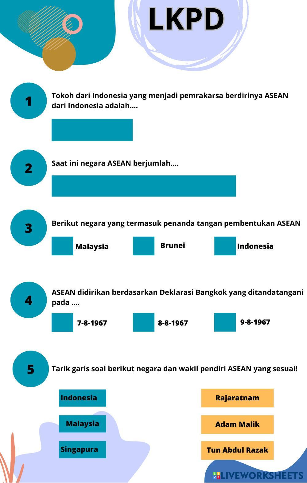 Created by ICE_LISTIANI Ilmu Pengetahuan Sosial (IPS) Asean Edad 12-11 level: 6 Indonesian Instrucciones del autor MATERI ASEAN KELAS 6 My Google Classroom Courses × 0 classes selected (0 students total) Quick Access Select all classes (0 classes) All Classes Loading courses... Cancelar Share Share to selected Course __COURSE_NAME__ __STUDENT_NAME__ (__STUDENT_EMAIL__) ASEAN Descargar Worksheet Validation Comprobar mis respuestas Emails my answers to my teacher Nombre completo Group/level Asignatura Teacher's email or key code Close Submit Validating worksheet... (12) Your answers have been sent to your teacher. Good luck! OK We encountered an error submitting your answers. Please try again. OK Anuncio | Ir sin anuncios Created by ICE_LISTIANI Ilmu Pengetahuan Sosial (IPS) Asean Edad 12-11 level: 6 Indonesian Instrucciones del autor MATERI ASEAN KELAS 6