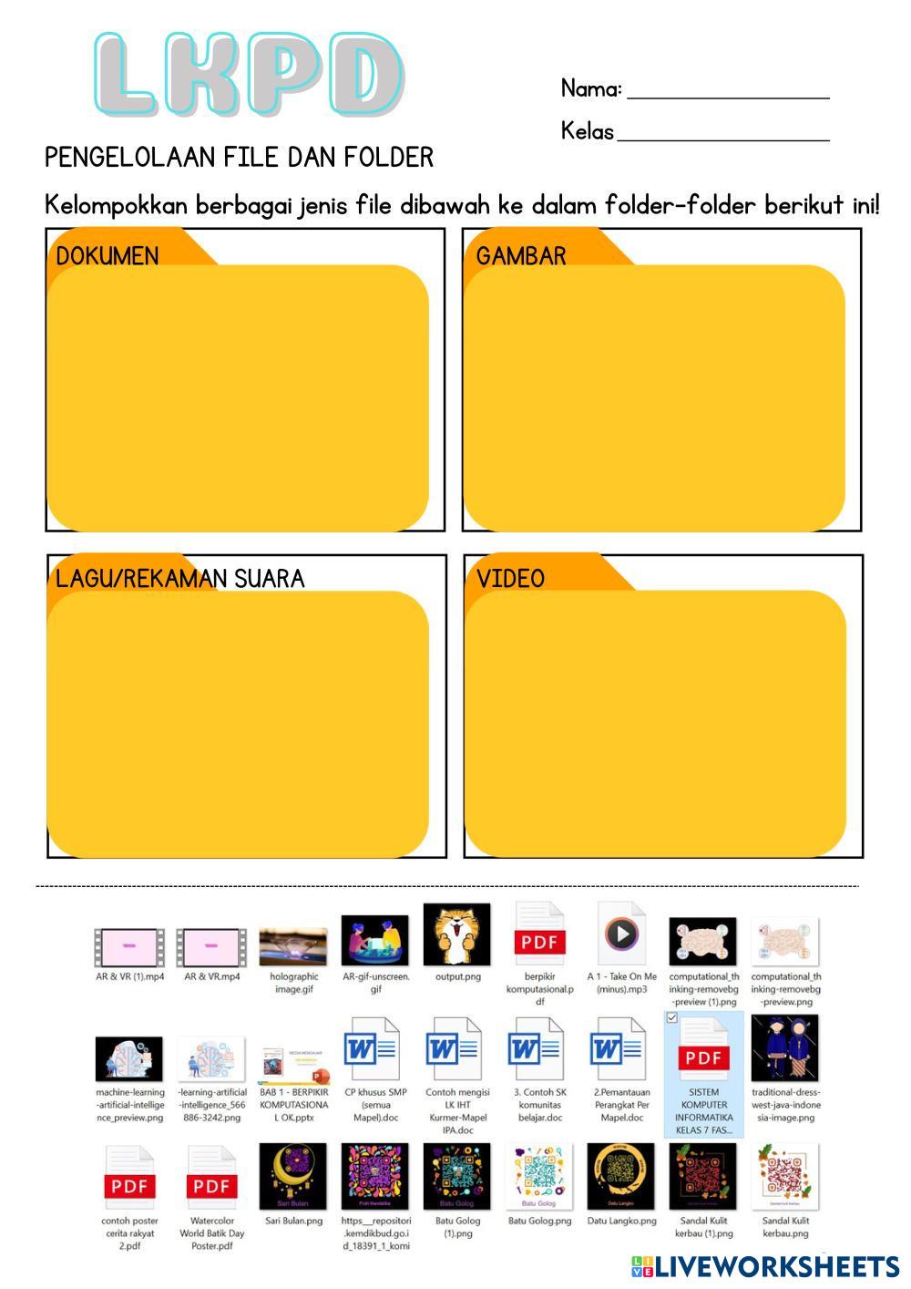 Created by aprilianurisra Informatics files classification Edad 11-16 level: 7thd grader Indonesian Instrucciones del autor My Google Classroom Courses × 0 classes selected (0 students total) Quick Access Select all classes (0 classes) All Classes Loading courses... Cancelar Share Share to selected Course __COURSE_NAME__ __STUDENT_NAME__ (__STUDENT_EMAIL__) LKPD Informatika File dan Folder Descargar Worksheet Validation Comprobar mis respuestas Emails my answers to my teacher Nombre completo Group/level Asignatura Teacher's email or key code Close Submit Validating worksheet... (12) Your answers have been sent to your teacher. Good luck! OK We encountered an error submitting your answers. Please try again. OK Anuncio | Ir sin anuncios Created by aprilianurisra Informatics files classification Edad 11-16 level: 7thd grader Indonesian Instrucciones del autor