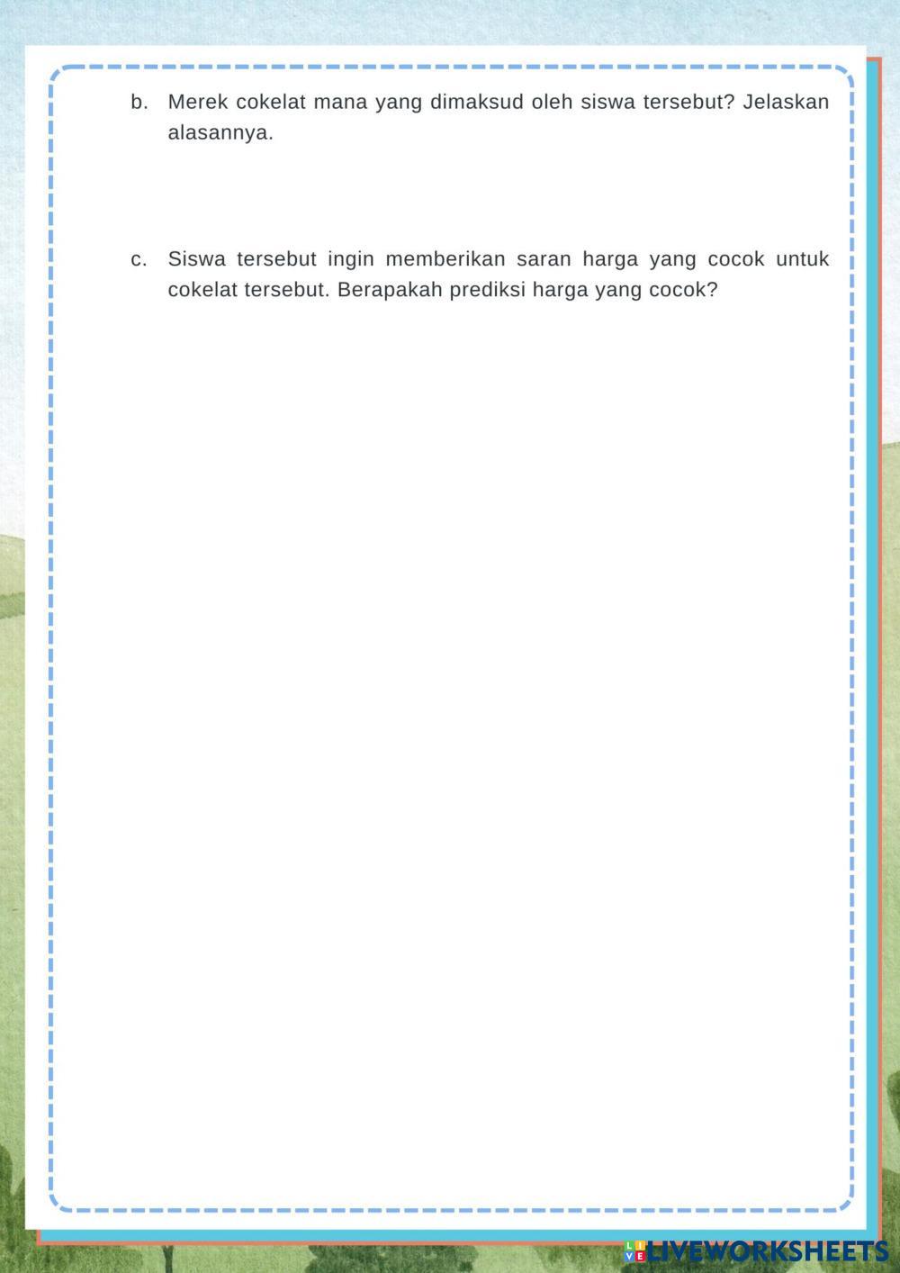 Created by Syariful Akbar Matematika Statistika Edad 15+ level: XI Indonesian Author's Instructions My Google Classroom Courses × 0 classes selected (0 students total) Quick Access Select all classes (0 classes) All Classes Loading courses... Cancelar Share Share to selected Course __COURSE_NAME__ __STUDENT_NAME__ (__STUDENT_EMAIL__) E-LKPD Interaktif Matematika Pertemuan 2 Download Worksheet Validation Comprobar mis respuestas Emails my answers to my teacher Nombre completo Group/level Asignatura Teacher's email or key code Close Submit Validating worksheet... (12) Your answers have been sent to your teacher. Good luck! OK We encountered an error submitting your answers. Please try again. OK Anuncio | Ir sin anuncios Created by Syariful Akbar Matematika Statistika Edad 15+ level: XI Indonesian Author's Instructions