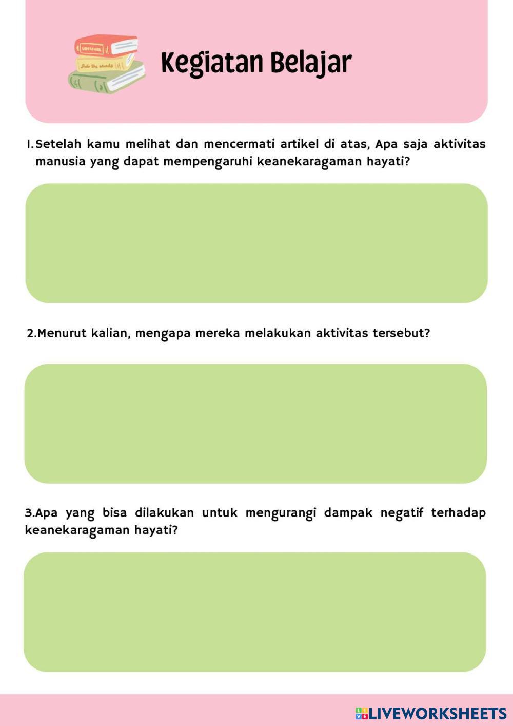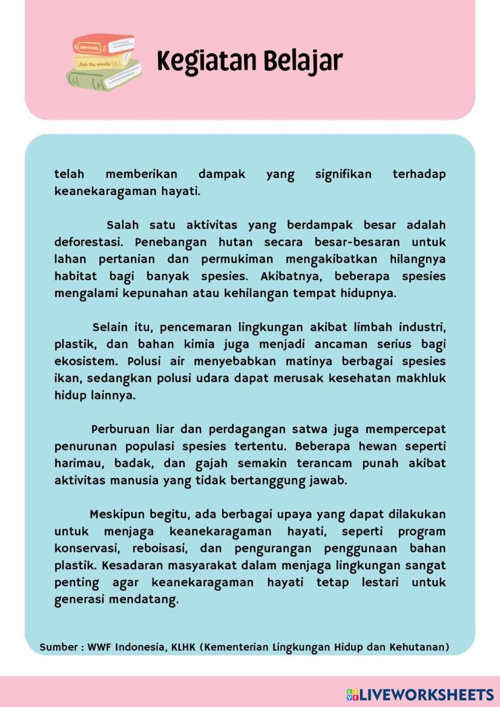 Created byRahmania Aulia Azahra IPA Biologi SMP ilmu pengetahuan alam Edad 12+ level: - Indonesian Instrucciones del autor My Google Classroom Courses × 0 classes selected (0 students total) Quick Access Select all classes (0 classes) All Classes Loading courses... Cancelar Share Share to selected Course __COURSE_NAME__ __STUDENT_NAME__ (__STUDENT_EMAIL__) E-LKPD Interaktif Keanekaragaman Hayati Descargar Worksheet Validation Comprobar mis respuestas Emails my answers to my teacher Nombre completo Group/level Asignatura Teacher's email or key code Close Submit Validating worksheet... (12) Your answers have been sent to your teacher. Good luck! OK We encountered an error submitting your answers. Please try again. OK Anuncio | Ir sin anuncios Created byRahmania Aulia Azahra IPA Biologi SMP ilmu pengetahuan alam Edad 12+ level: - Indonesian Instrucciones del autor