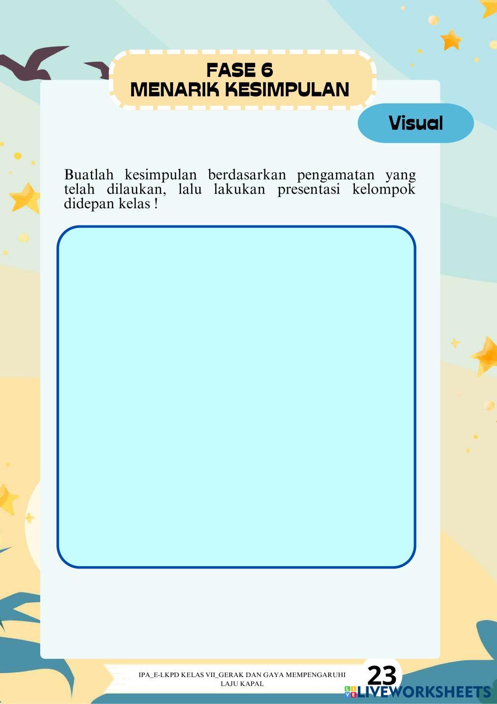 Created byLisnurhan54321 IPA Fisika ILMU PENGETAHUAN ALAM Edad 12-18 level: 7 Indonesian Instrucciones del autor My Google Classroom Courses × 0 classes selected (0 students total) Quick Access Select all classes (0 classes) All Classes Loading courses... Cancelar Share Share to selected Course __COURSE_NAME__ __STUDENT_NAME__ (__STUDENT_EMAIL__) LKPD GERAK DAN GAYA Descargar Worksheet Validation Comprobar mis respuestas Emails my answers to my teacher Nombre completo Group/level Asignatura Teacher's email or key code Close Submit Validating worksheet... (12) Your answers have been sent to your teacher. Good luck! OK We encountered an error submitting your answers. Please try again. OK Anuncio | Ir sin anuncios Created byLisnurhan54321 IPA Fisika ILMU PENGETAHUAN ALAM Edad 12-18 level: 7 Indonesian Instrucciones del autor