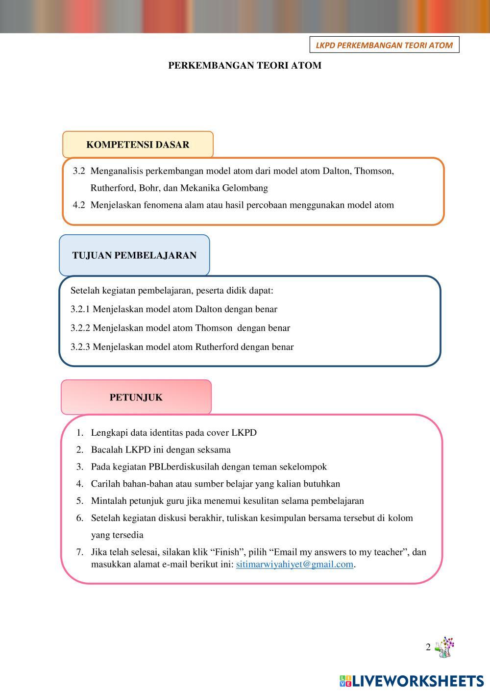 Created bySiti Marwiyah Kimia Perkembangan Teori Atom Edad 15+ level: X Indonesian Instrucciones del autor My Google Classroom Courses × 0 classes selected (0 students total) Quick Access Select all classes (0 classes) All Classes Loading courses... Cancelar Share Share to selected Course __COURSE_NAME__ __STUDENT_NAME__ (__STUDENT_EMAIL__) LKPD Perkembangan Teori Atom Descargar Worksheet Validation Comprobar mis respuestas Emails my answers to my teacher Nombre completo Group/level Asignatura Teacher's email or key code Close Submit Validating worksheet... (12) Your answers have been sent to your teacher. Good luck! OK We encountered an error submitting your answers. Please try again. OK Anuncio | Ir sin anuncios Created bySiti Marwiyah Kimia Perkembangan Teori Atom Edad 15+ level: X Indonesian Instrucciones del autor