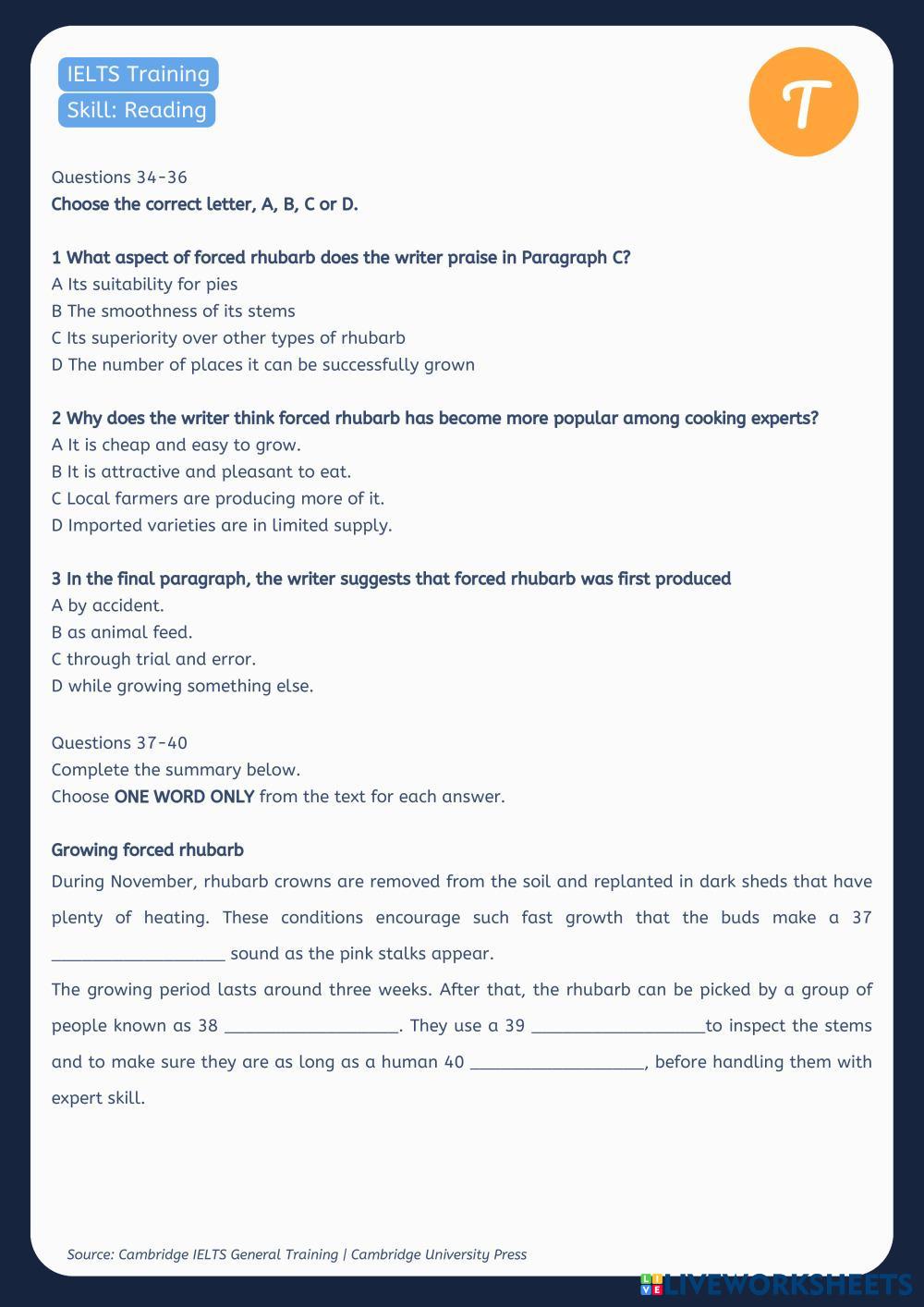 Created by Thinkie IELTS Thinkie Edad 18+ level: B2 English Author's Instructions My Google Classroom Courses × 0 classes selected (0 students total) Quick Access Select all classes (0 classes) All Classes Loading courses... Cancelar Share Share to selected Course __COURSE_NAME__ __STUDENT_NAME__ (__STUDENT_EMAIL__) ELTS Reading Test 3 Section 3 Download Worksheet Validation Comprobar mis respuestas Emails my answers to my teacher Nombre completo Group/level Asignatura Teacher's email or key code Close Submit Validating worksheet... (12) Your answers have been sent to your teacher. Good luck! OK We encountered an error submitting your answers. Please try again. OK Anuncio | Ir sin anuncios Created by Thinkie IELTS Thinkie Edad 18+ level: B2 English Author's Instructions