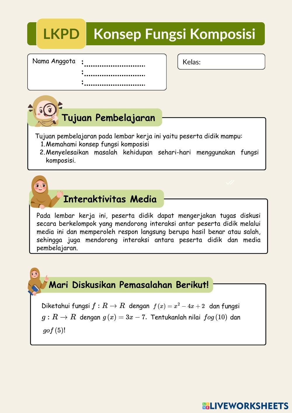 Peserta Didik dapat berdiskusi untuk memahami konsep fungsi komposisi