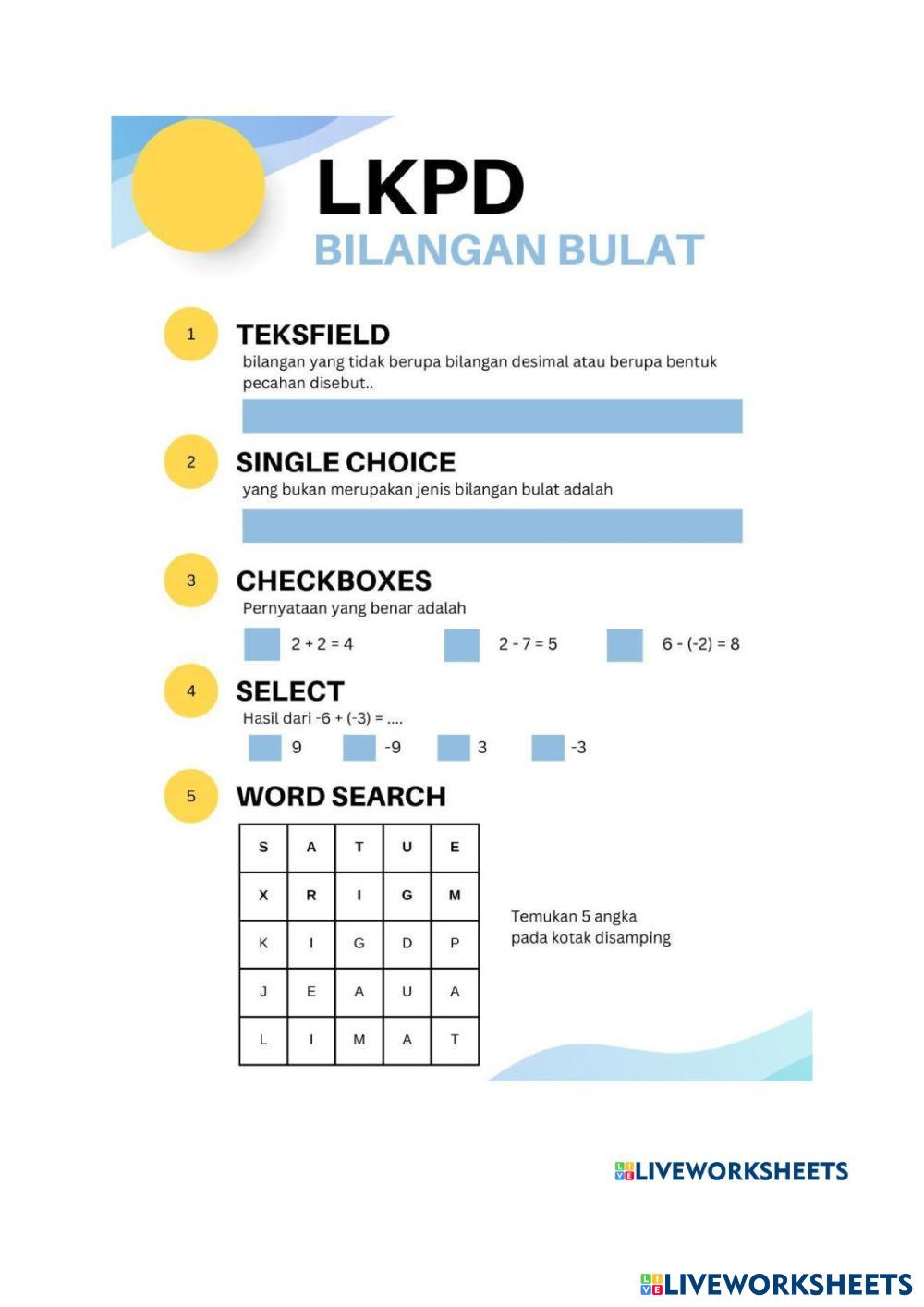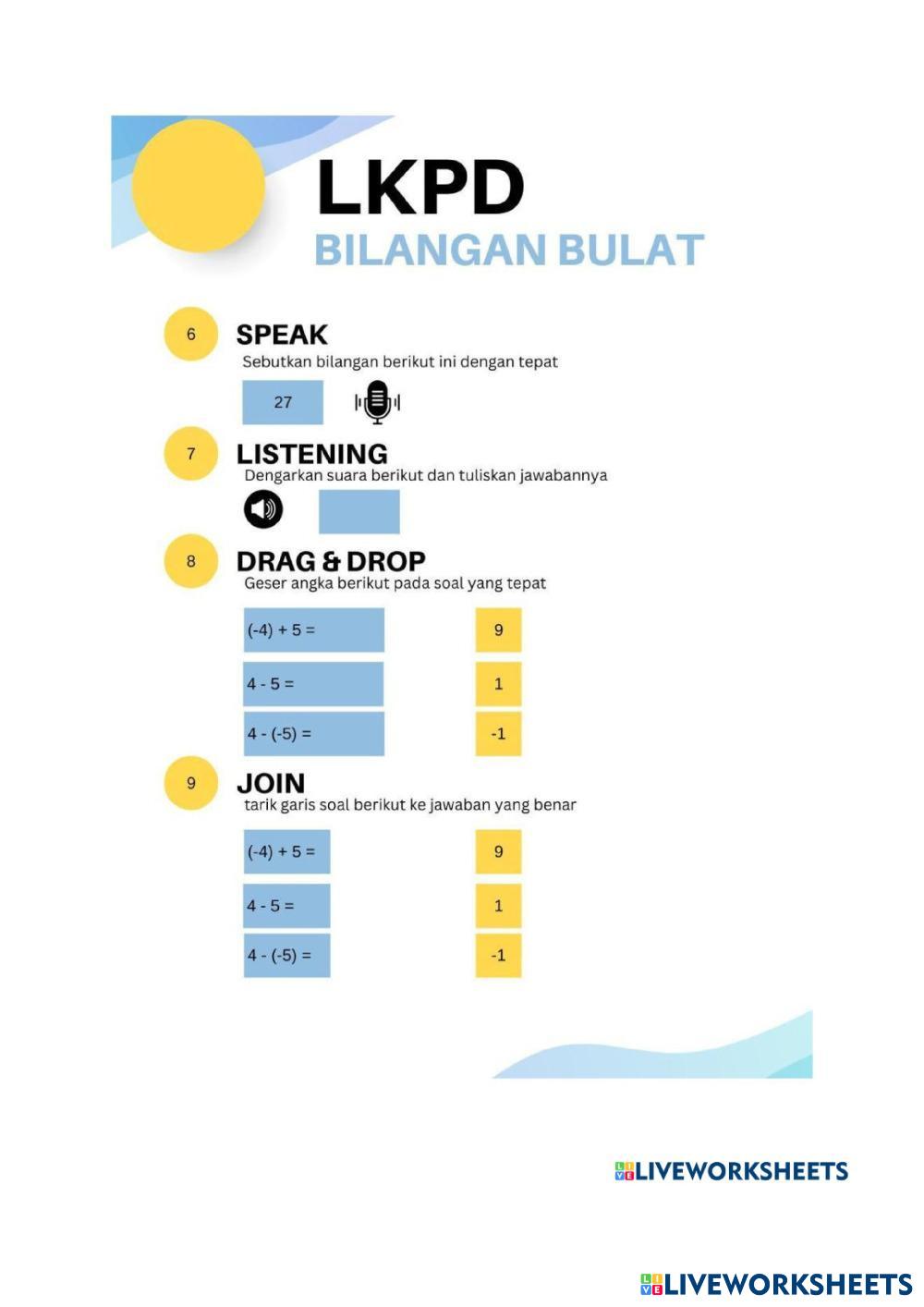 Created by Arinahm Math Middle School 7th grade Geometry Indonesian Author's Instructions Kerjakan dengan benar My Google Classroom Courses × 0 classes selected (0 students total) Quick Access Select all classes (0 classes) All Classes Loading courses... Cancelar Share Share to selected Course __COURSE_NAME__ __STUDENT_NAME__ (__STUDENT_EMAIL__) LATIHAN Download Worksheet Validation Comprobar mis respuestas Emails my answers to my teacher Nombre completo Group/level Asignatura Teacher's email or key code Close Submit Validating worksheet... (12) Your answers have been sent to your teacher. Good luck! OK We encountered an error submitting your answers. Please try again. OK Anuncio | Ir sin anuncios Created by Arinahm Math Middle School 7th grade Geometry Indonesian Author's Instructions Kerjakan dengan benar Explore Worksheets CÁLCULO DEL VOLUMEN Math 7th grade CÁLCULO DEL VOLUMEN Geometry - Math LEE CON ATENCIÓN Y CONTESTA DE FORMA CORRECTA. LKPD HUBUNGAN ANTAR SEGIEMPAT Math 7th grade LKPD HUBUNGAN ANTAR SEGIEMPAT Geometry - Math silakan kerjakan LKPD beriku secara urut, berdoalah sebelum mengerjakan! JUEGO Y APRENDO CON FRACCIONES Math 7th grade JUEGO Y APRENDO CON FRACCIONES Geometry - Math LEE CORRECTAMENTE Y RESUELVE NÚMEROS DECIMALES Y CÁCULO DE ÁREA DE CUERPOS GEOMÉTRICOS Math 7th grade NÚMEROS DECIMALES Y CÁCULO DE ÁREA DE CUERPOS GEOMÉTRICOS Geometry - Math Lee cada ejercicio con atención, elige la respuesta correcta o completa el espacio vacío según corresponda.