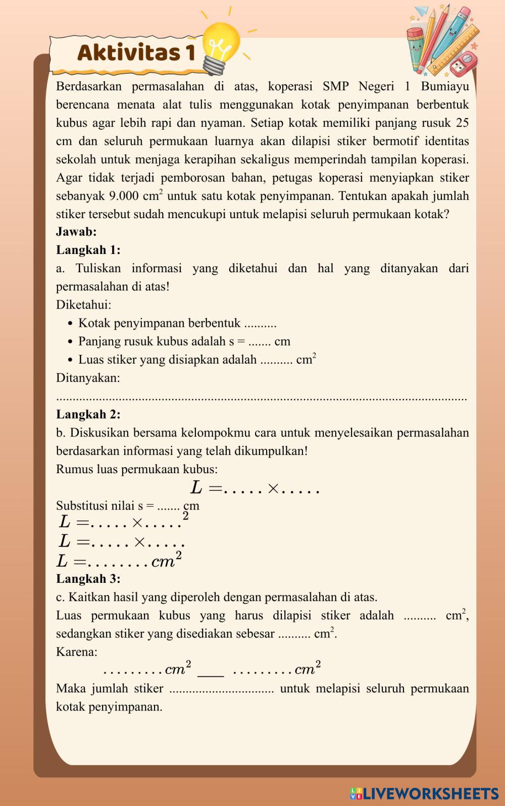 - Diskusikan setiap aktivitas yang terdiri dari langkah 1, 2, 3, dan 4 dalam kelompok anda. Tidak diperkenankan menanyakan pada kelompok lain. Apabila anda mengalami kesulitan mintalah penjelasan pada guru