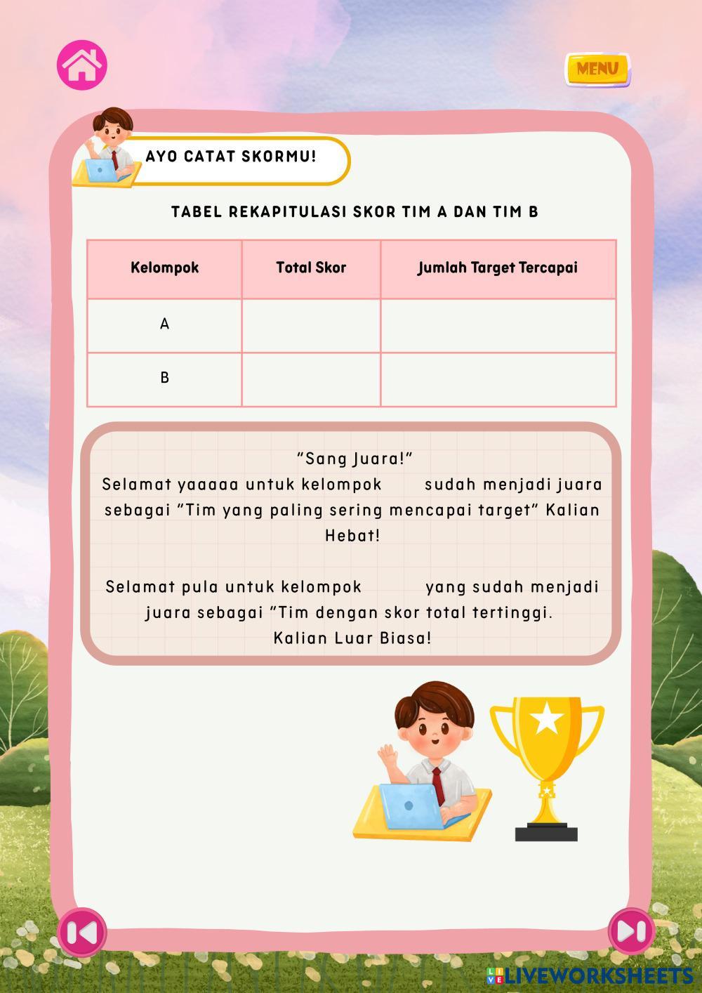 tabel Rekapitulasi Skor Tim A dan B