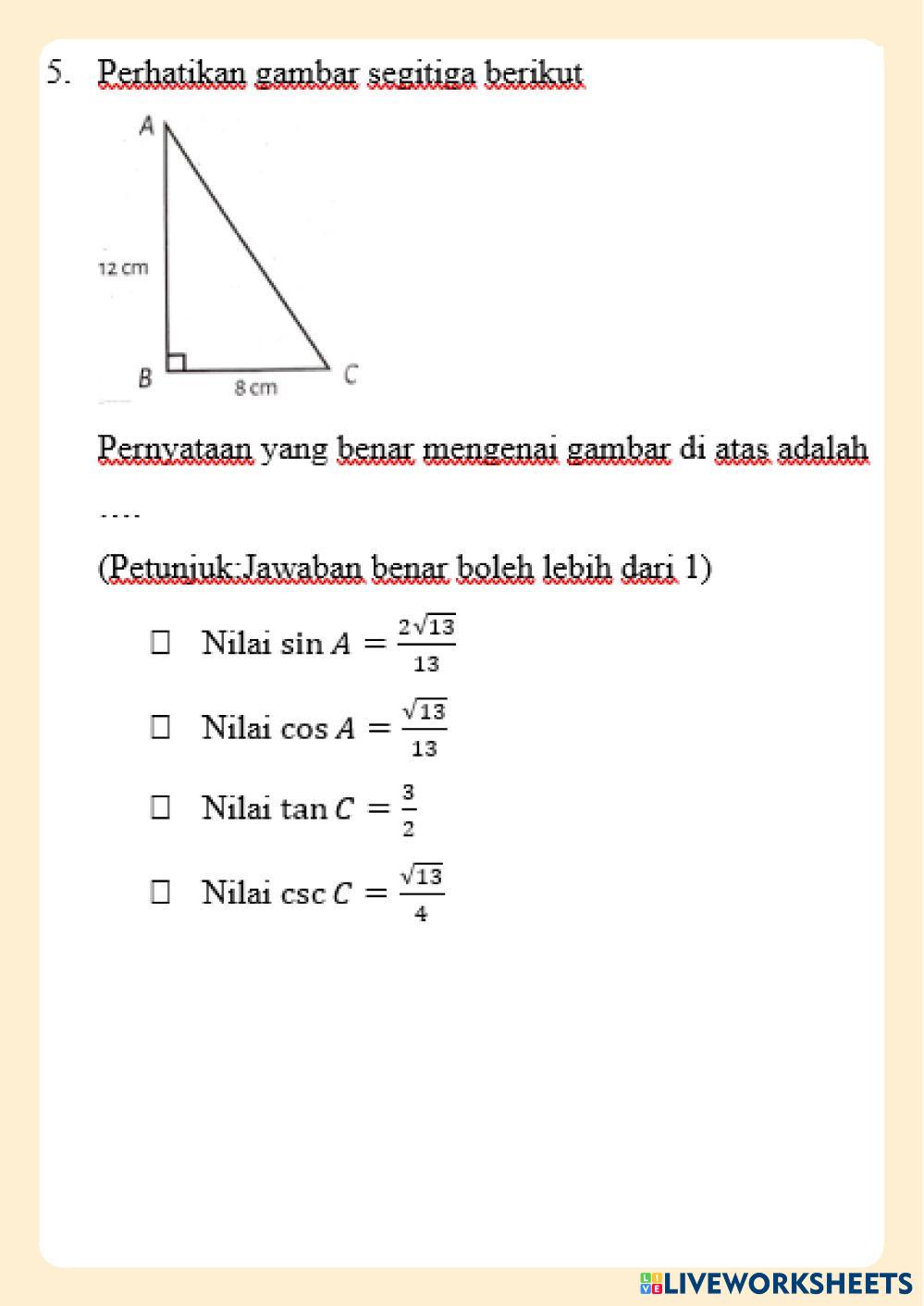 Baca dengan seksama materi mengenai perbandingan trigonometri kemudian isilah pertanyaan yang tersedia