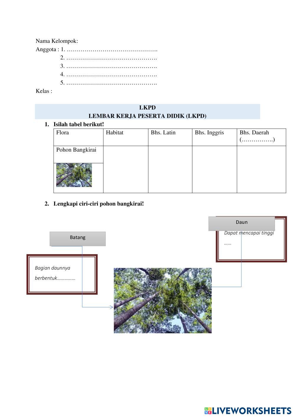 Created byHamrin MULOK SUMBER DAYA FLORA DI PROVINSI KALIMANTAN TIMUR Edad 14-18 level: SMA Kelas X Indonesian Instrucciones del autor My Google Classroom Courses × 0 classes selected (0 students total) Quick Access Select all classes (0 classes) All Classes Loading courses... Cancelar Share Share to selected Course __COURSE_NAME__ __STUDENT_NAME__ (__STUDENT_EMAIL__) Pohon Bangkirai Descargar Worksheet Validation Comprobar mis respuestas Emails my answers to my teacher Nombre completo Group/level Asignatura Teacher's email or key code Close Submit Validating worksheet... (12) Your answers have been sent to your teacher. Good luck! OK We encountered an error submitting your answers. Please try again. OK Anuncio | Ir sin anuncios Created byHamrin MULOK SUMBER DAYA FLORA DI PROVINSI KALIMANTAN TIMUR Edad 14-18 level: SMA Kelas X Indonesian Instrucciones del autor
