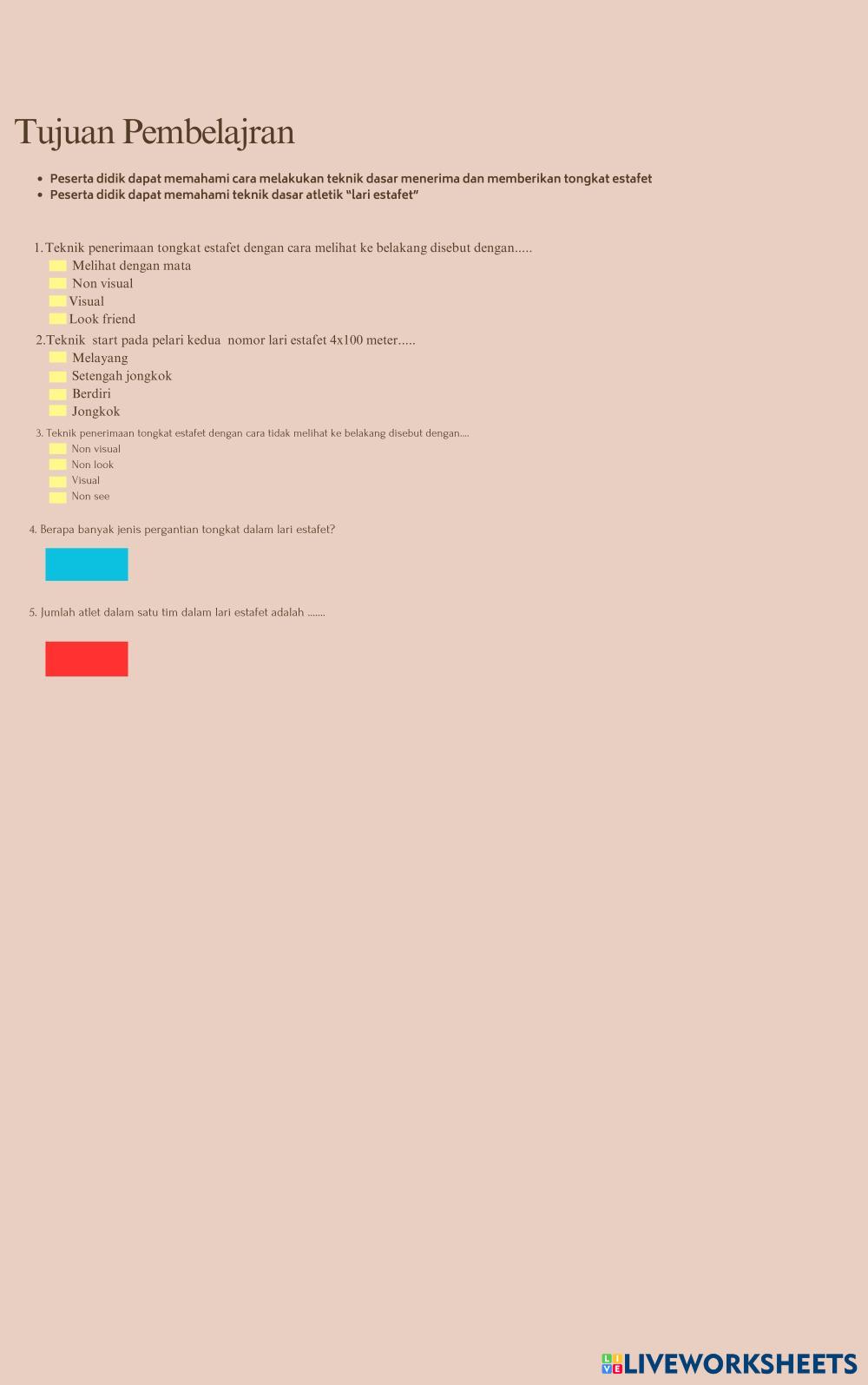 Created byJayatmi Nicosita PJOK SMA ATLETIK Edad 15+ level: Fase F Indonesian Instrucciones del autor My Google Classroom Courses × 0 classes selected (0 students total) Quick Access Select all classes (0 classes) All Classes Loading courses... Cancelar Share Share to selected Course __COURSE_NAME__ __STUDENT_NAME__ (__STUDENT_EMAIL__) Jayatmi Nicosita, S.Pd Descargar Worksheet Validation Comprobar mis respuestas Emails my answers to my teacher Nombre completo Group/level Asignatura Teacher's email or key code Close Submit Validating worksheet... (12) Your answers have been sent to your teacher. Good luck! OK We encountered an error submitting your answers. Please try again. OK Anuncio | Ir sin anuncios Created byJayatmi Nicosita PJOK SMA ATLETIK Edad 15+ level: Fase F Indonesian Instrucciones del autor