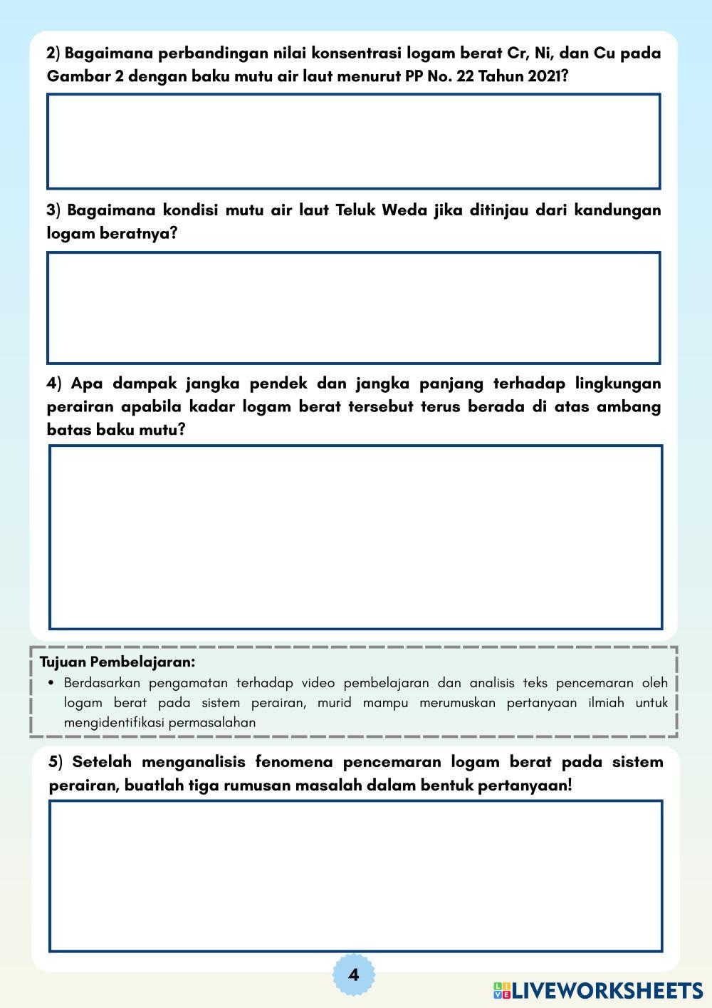 Selanjutnya, peserta didik diajak untuk mengidentifikasi masalah dengan merumuskan pertanyaan terkait apa yang dimaksud dengan laju reaksi dan faktor-faktor yang memengaruhinya. Tahap ini mendorong kemampuan berpikir kritis dan rasa ingin tahu ilmiah.