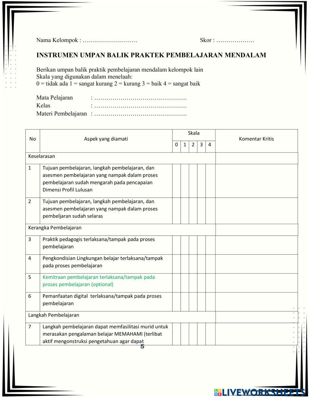 Berikan umpan balik praktik pembelajaran mendalam kelompok lain