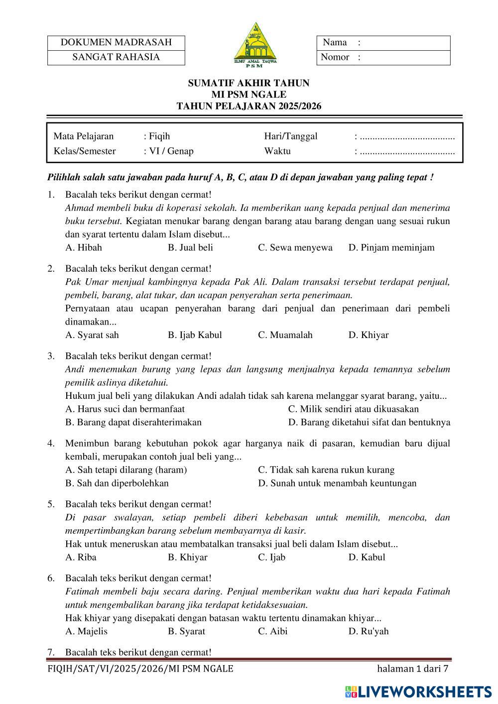 Created byMuhammad Latief Alfadzoli Ciencias Sociales Educación Secundaria Obligatoria 6º de Primaria Comunidad y Cultura Indonesian Instrucciones del autor SAT FIQIH KELAS 6 My Google Classroom Courses × 0 classes selected (0 students total) Quick Access Select all classes (0 classes) All Classes Loading courses... Cancelar Share Share to selected Course __COURSE_NAME__ __STUDENT_NAME__ (__STUDENT_EMAIL__) SAT FIQIH KELAS 6 Descargar Worksheet Validation Comprobar mis respuestas Emails my answers to my teacher Nombre completo Group/level Asignatura Teacher's email or key code Close Submit Validating worksheet... (12) Your answers have been sent to your teacher. Good luck! OK We encountered an error submitting your answers. Please try again. OK Anuncio | Ir sin anuncios Created byMuhammad Latief Alfadzoli Ciencias Sociales Educación Secundaria Obligatoria 6º de Primaria Comunidad y Cultura Indonesian Instrucciones del autor SAT FIQIH KELAS 6 Explora las hojas de trabajo SAT SKI KELAS 6 Social Studies 6th grade SAT SKI KELAS 6 Community and Culture - Social Studies SAT SKI KELAS 6 SAT QUR'AN HADIST KELAS 6 Social Studies 6th grade SAT QUR'AN HADIST KELAS 6 Community and Culture - Social Studies SAT QUR'AN HADIST KELAS 6 SAT QUR'AN HADIST KELAS 6 Social Studies 6th grade SAT QUR'AN HADIST KELAS 6 Community and Culture - Social Studies SAT QUR'AN HADIST KELAS 6 SAT QUR'AN HADIST KELAS 6 Social Studies 6th grade SAT QUR'AN HADIST KELAS 6 Community and Culture - Social Studies SAT QUR'AN HADIST KELAS 6