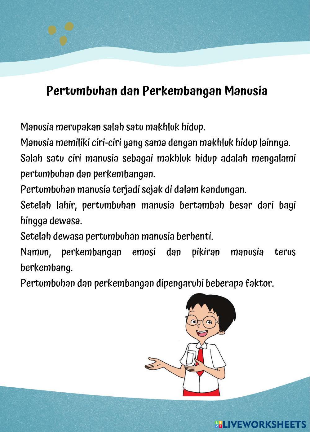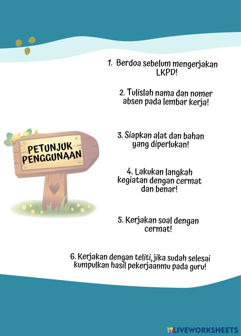 Created byDewi Mukti Kartikaningrum Tema 1 Sub Tema1 Edad 8-13 level: 3 Indonesian Instrucciones del autor My Google Classroom Courses × 0 classes selected (0 students total) Quick Access Select all classes (0 classes) All Classes Loading courses... Cancelar Share Share to selected Course __COURSE_NAME__ __STUDENT_NAME__ (__STUDENT_EMAIL__) TEMA 1 ( PERTUMBUHAN DAN PERKEMBANGAN MAKHLUK HIDUP ) Descargar Worksheet Validation Comprobar mis respuestas Emails my answers to my teacher Nombre completo Group/level Asignatura Teacher's email or key code Close Submit Validating worksheet... (12) Your answers have been sent to your teacher. Good luck! OK We encountered an error submitting your answers. Please try again. OK Anuncio | Ir sin anuncios Created byDewi Mukti Kartikaningrum Tema 1 Sub Tema1 Edad 8-13 level: 3 Indonesian Instrucciones del autor