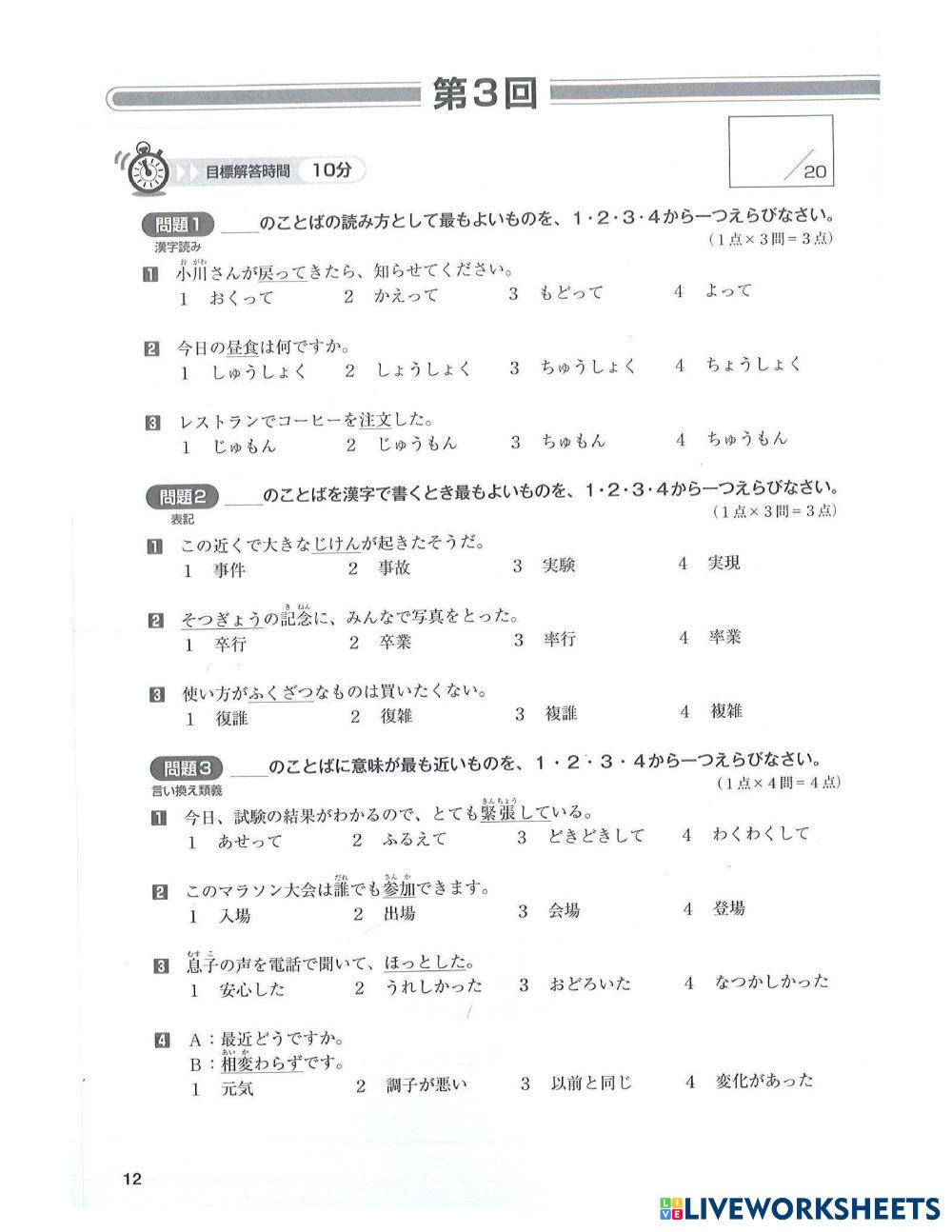 ドリルN3ー文字語彙ー3回