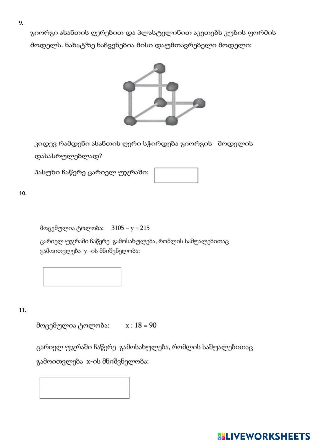 მათემატიკა (მოქმედებები რიცხვებზე, კანონზომიერება,ალგებრა,გეომეტრია)