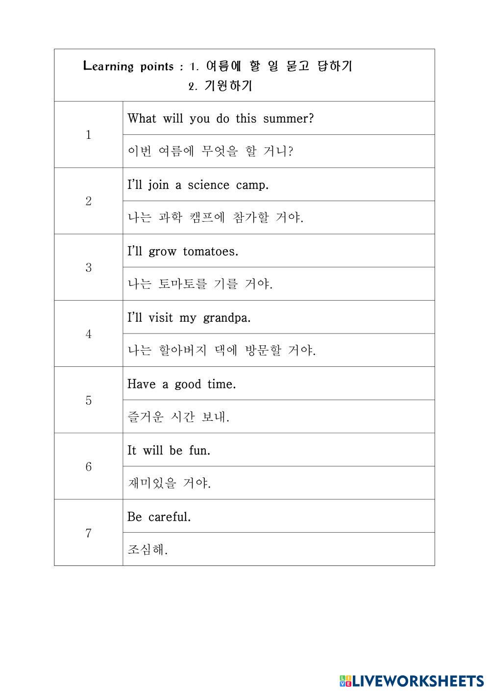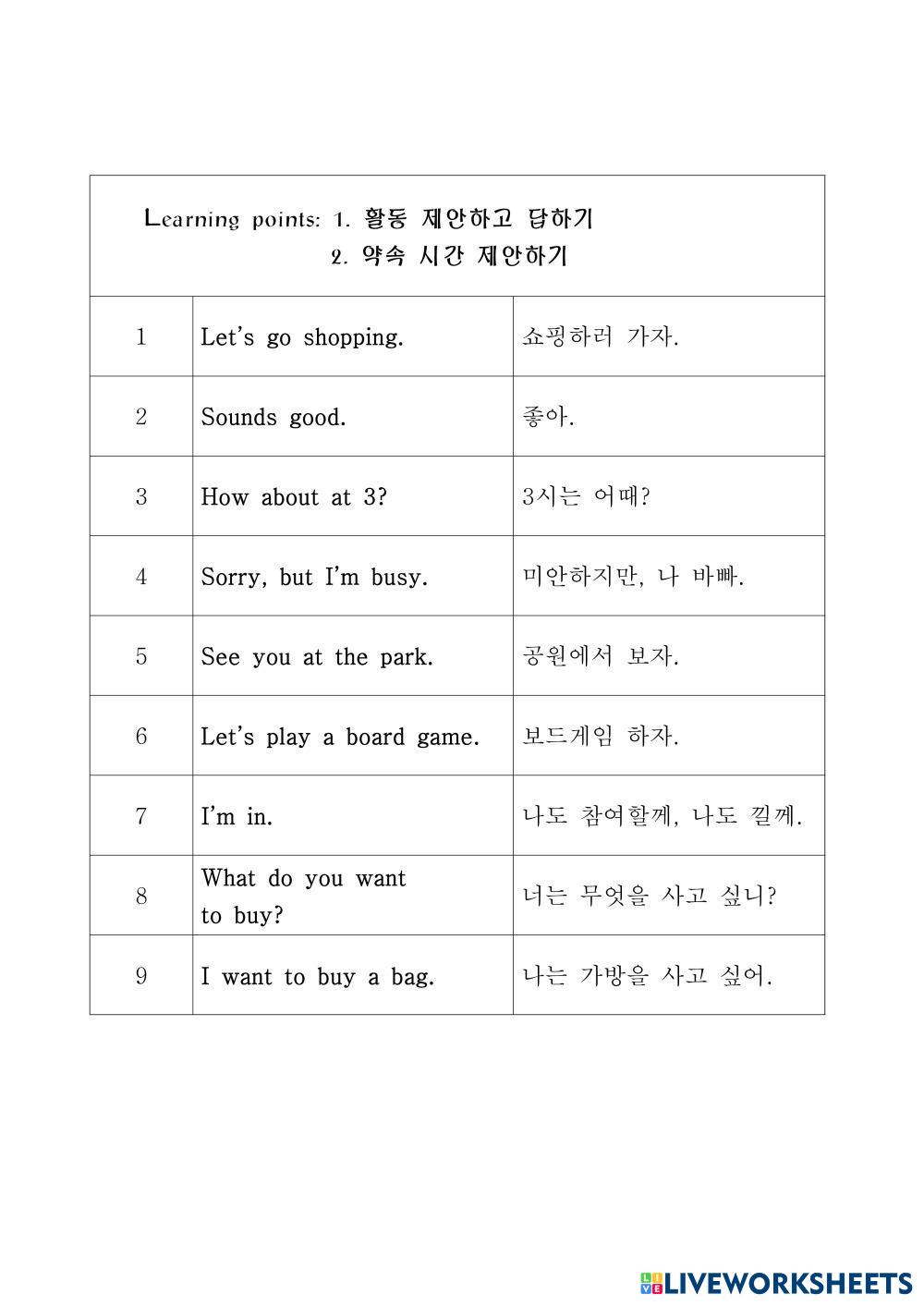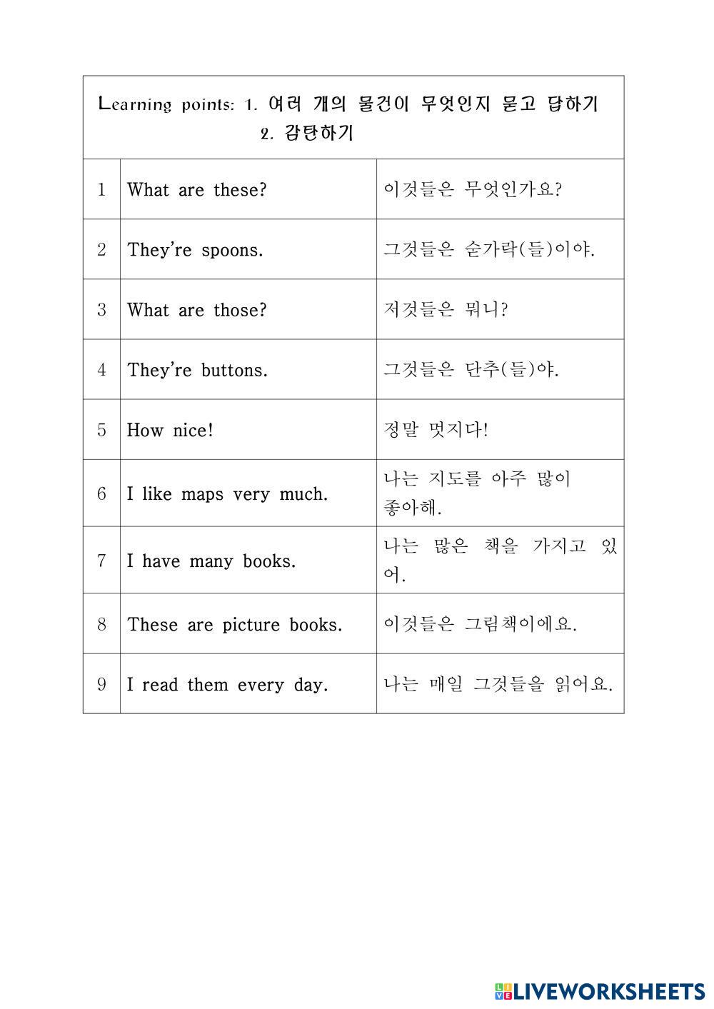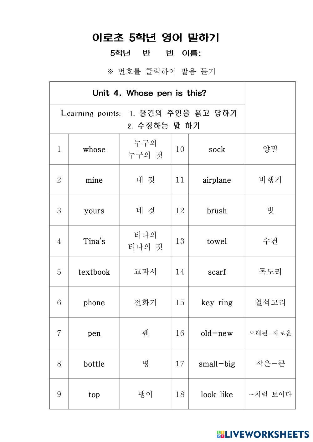 Created byKim Sejin Lengua y Literatura Educación Infantil Guardería Vocabulario Korean Instrucciones del autor 1~6과 My Google Classroom Courses × 0 classes selected (0 students total) Quick Access Select all classes (0 classes) All Classes Loading courses... Cancelar Share Share to selected Course __COURSE_NAME__ __STUDENT_NAME__ (__STUDENT_EMAIL__) 2026.5학년1학기 Descargar Worksheet Validation Comprobar mis respuestas Emails my answers to my teacher Nombre completo Group/level Asignatura Teacher's email or key code Close Submit Validating worksheet... (12) Your answers have been sent to your teacher. Good luck! OK We encountered an error submitting your answers. Please try again. OK Anuncio | Ir sin anuncios Created byKim Sejin Lengua y Literatura Educación Infantil Guardería Vocabulario Korean Instrucciones del autor 1~6과 Explora las hojas de trabajo writing English Language Pre-K writing Vocabulary - English Language look and write 3. Lesson 3 - Unit 9 - Little Steps 1 English Language Pre-K 3. Lesson 3 - Unit 9 - Little Steps 1 Vocabulary - English Language Immerse children in literature and develop rich, natural vocabulary. 2. Lesson 2 - Unit 9 - Little Steps 1 English Language Pre-K 2. Lesson 2 - Unit 9 - Little Steps 1 Vocabulary - English Language Immerse children in literature and develop rich, natural vocabulary. 6. Lesson 6 - Unit 9 - Little Steps 1 English Language Pre-K 6. Lesson 6 - Unit 9 - Little Steps 1 Vocabulary - English Language Immerse children in literature and develop rich, natural vocabulary.