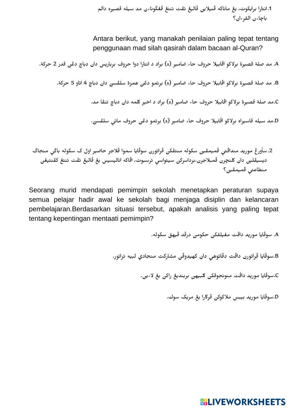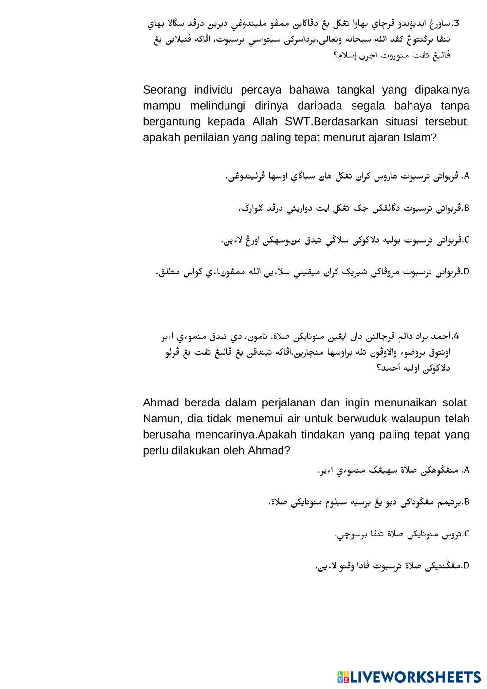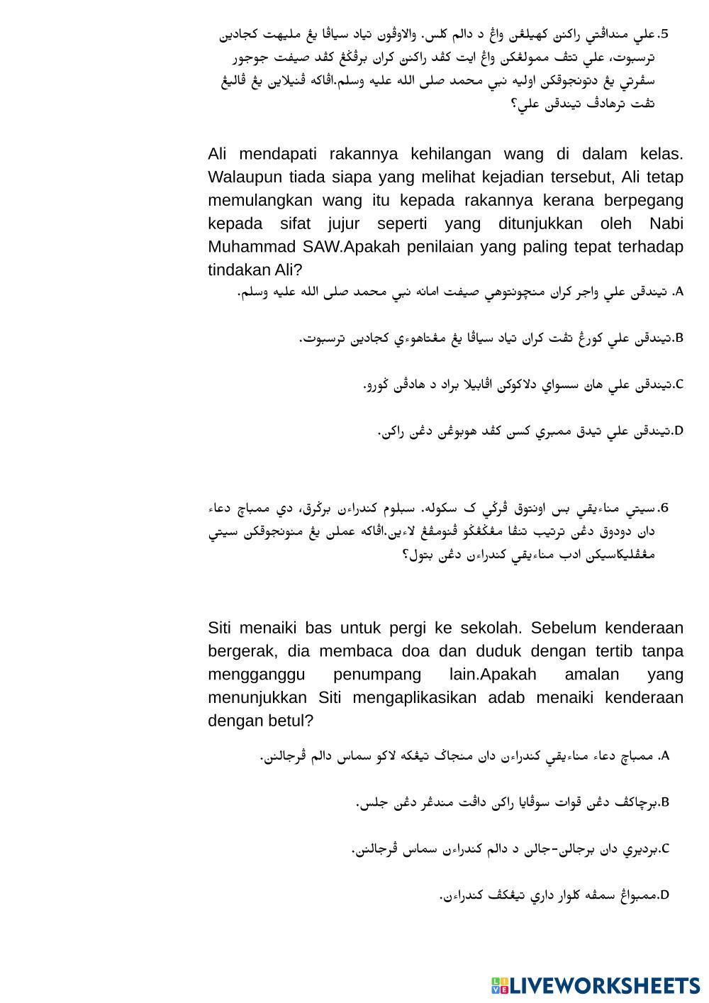 Soalan Pentaksiran pendidikan Islam Tahun 5