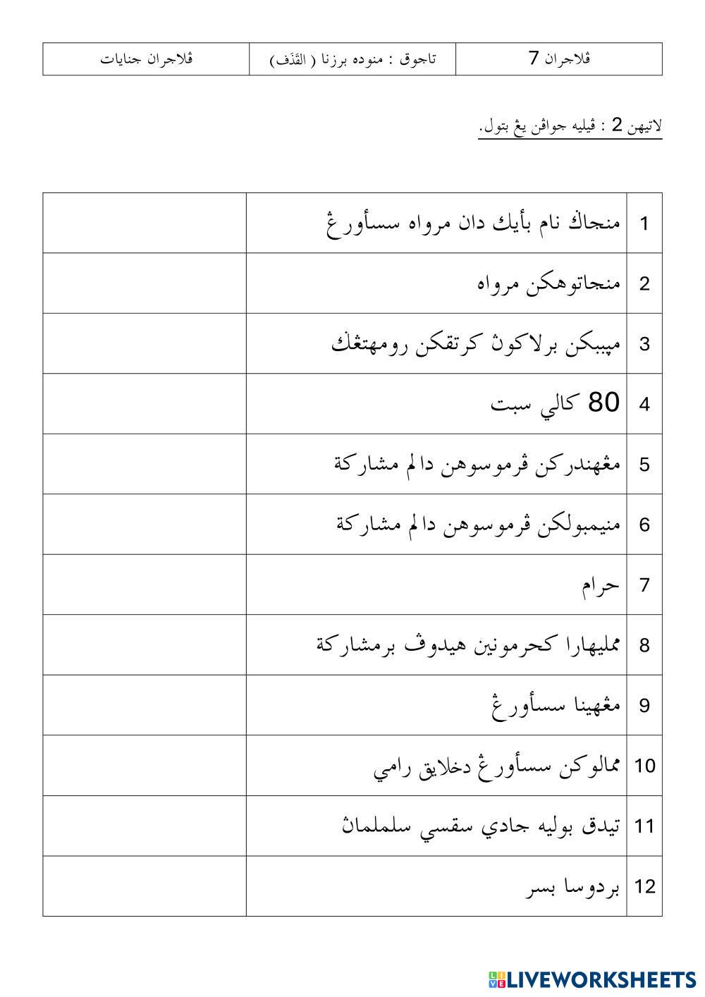 LATIHAN 2 JENAYAT DARJAH 6 TAJUK MENUDUH BERZINA