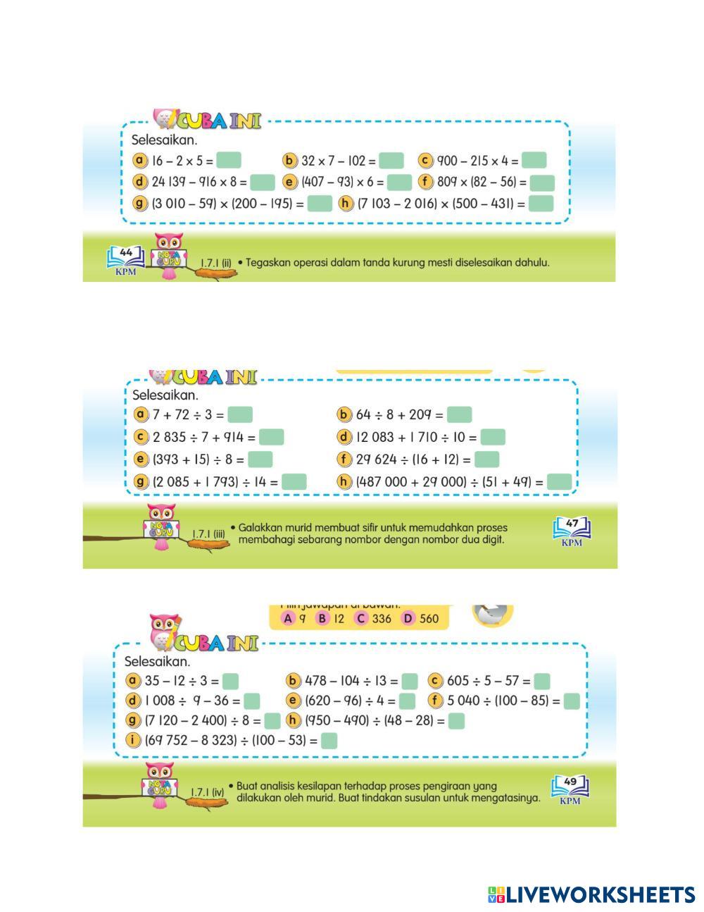 Tulis dahulu soalan(ayat Matematik dan penyelesaian dalam bentuk lazim) di dalam buku M1. Kemudian taip jawapan kamu di sini.