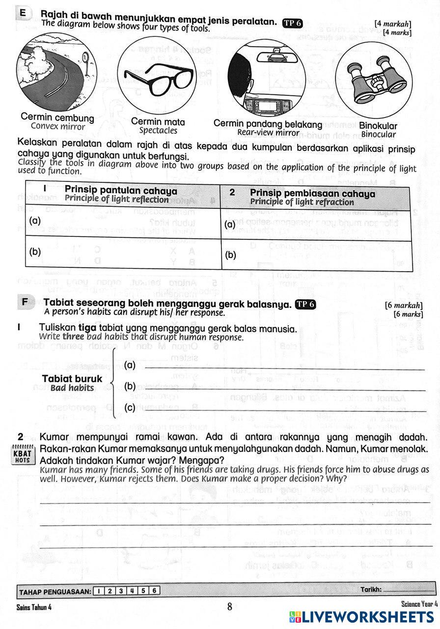 Created by eylabella Sains Tahun 4 SK exercise Edad 10-15 level: 4 Malay Instrucciones del autor Fill in the blank My Google Classroom Courses × 0 classes selected (0 students total) Quick Access Select all classes (0 classes) All Classes Loading courses... Cancelar Share Share to selected Course __COURSE_NAME__ __STUDENT_NAME__ (__STUDENT_EMAIL__) UNIT 1 - 5 SAINS T4 1 Descargar Worksheet Validation Comprobar mis respuestas Emails my answers to my teacher Nombre completo Group/level Asignatura Teacher's email or key code Close Submit Validating worksheet... (12) Your answers have been sent to your teacher. Good luck! OK We encountered an error submitting your answers. Please try again. OK Anuncio | Ir sin anuncios Created by eylabella Sains Tahun 4 SK exercise Edad 10-15 level: 4 Malay Instrucciones del autor Fill in the blank