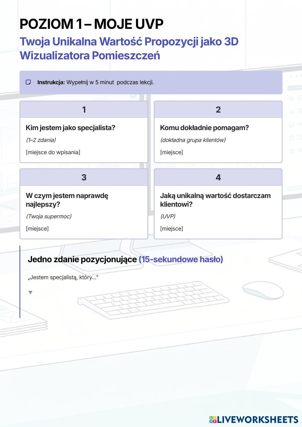 Instrukcja: Wypełnij w 5 minut podczas lekcji.