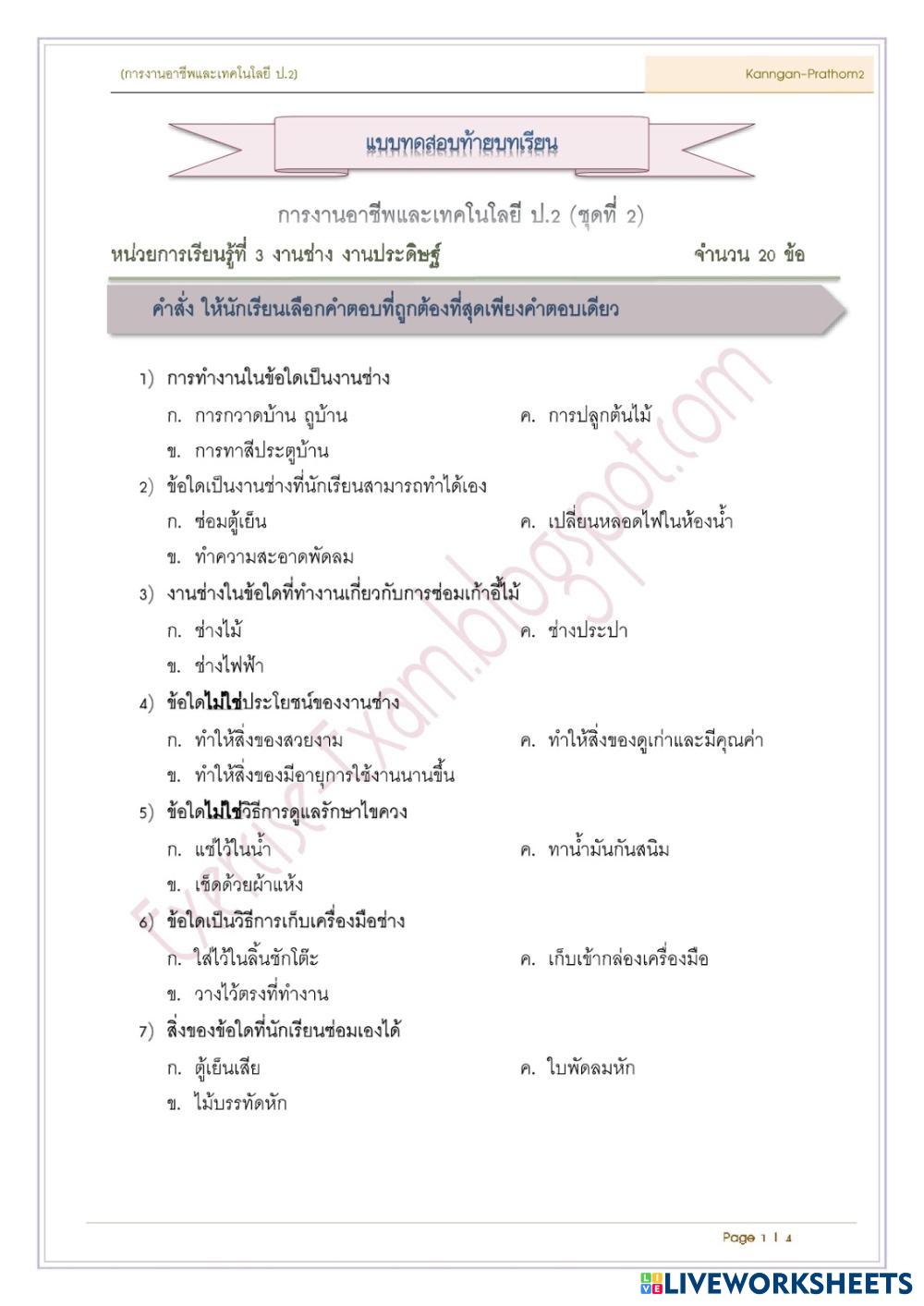 Created byPanut Suwitayasak Kanngan Kanngan Edad 8-11 level: grade 2 Thai Instrucciones del autor My Google Classroom Courses × 0 classes selected (0 students total) Quick Access Select all classes (0 classes) All Classes Loading courses... Cancelar Share Share to selected Course __COURSE_NAME__ __STUDENT_NAME__ (__STUDENT_EMAIL__) แบบทดสอบ การงาน ป.2 Descargar Worksheet Validation Comprobar mis respuestas Emails my answers to my teacher Nombre completo Group/level Asignatura Teacher's email or key code Close Submit Validating worksheet... (12) Your answers have been sent to your teacher. Good luck! OK We encountered an error submitting your answers. Please try again. OK Anuncio | Ir sin anuncios Created byPanut Suwitayasak Kanngan Kanngan Edad 8-11 level: grade 2 Thai Instrucciones del autor