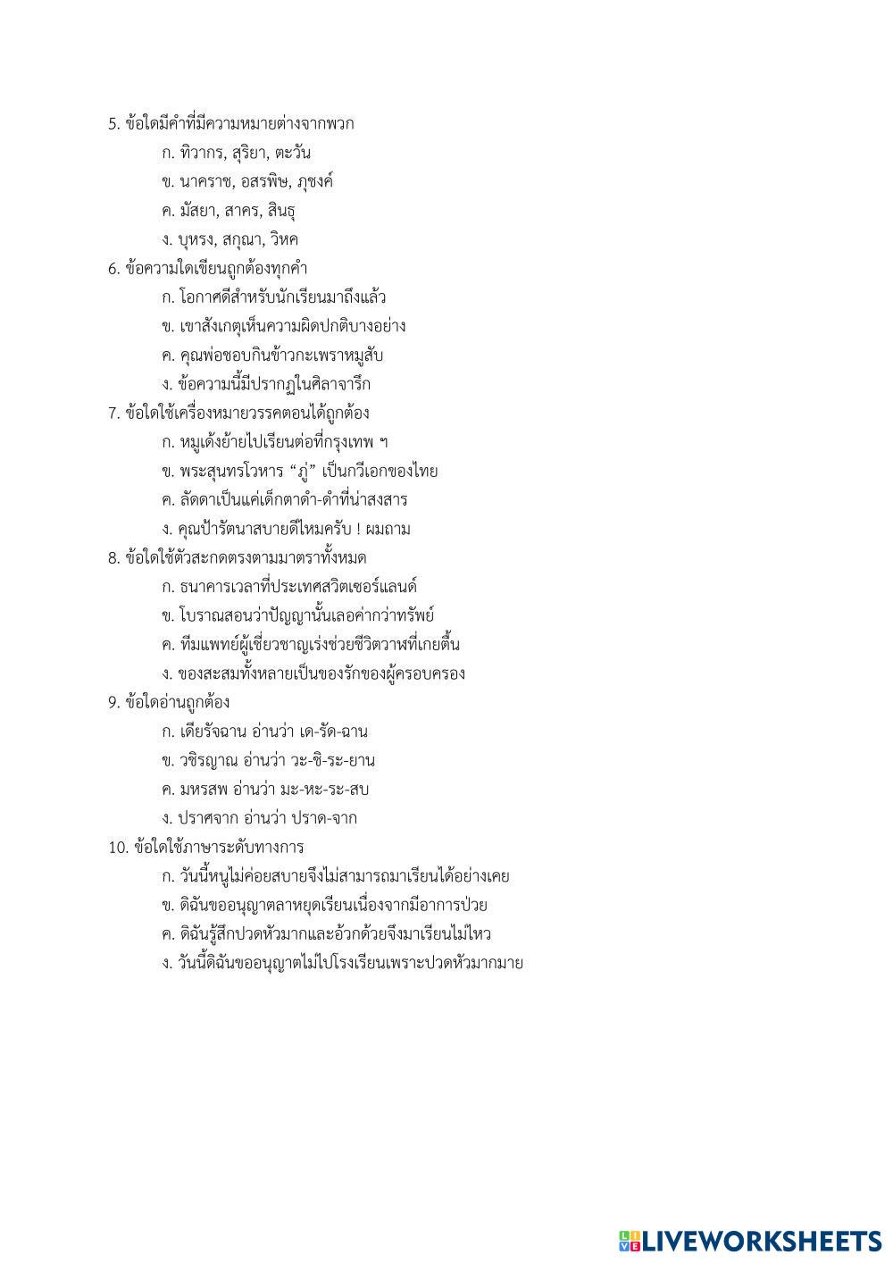 ตอนที่ 1 รายวิชาภาษาไทย จำนวน 10 ข้อ (25 คะแนน)
