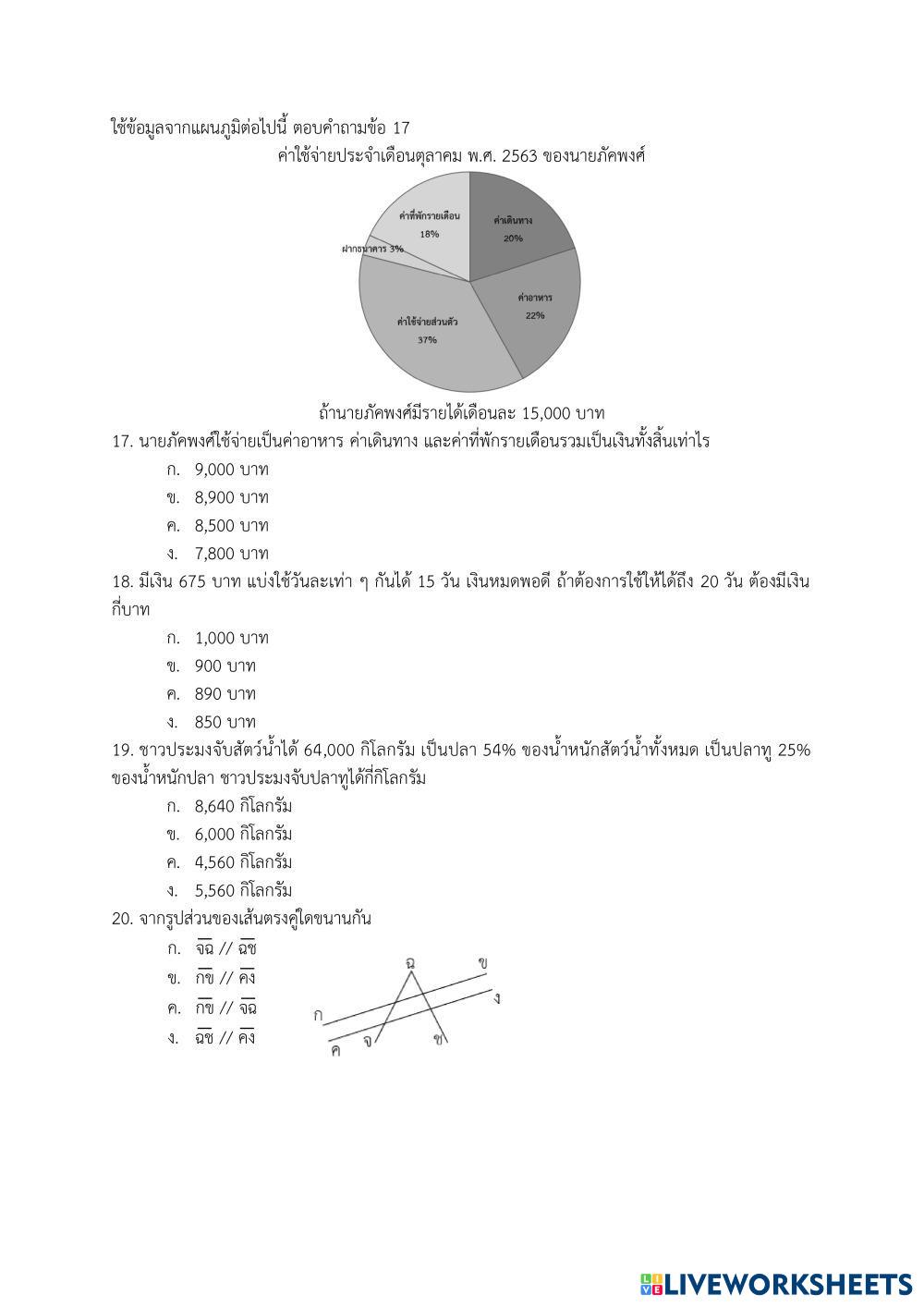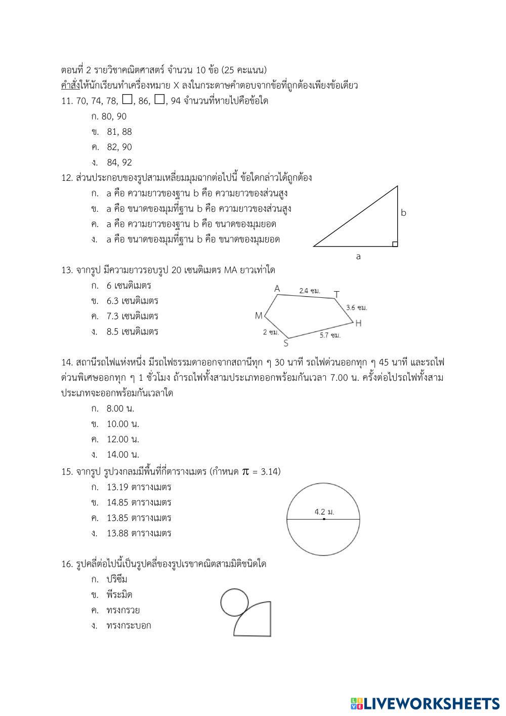 ตอนที่ 2 รายวิชาคณิตศาสตร์ จำนวน 10 ข้อ (25 คะแนน)