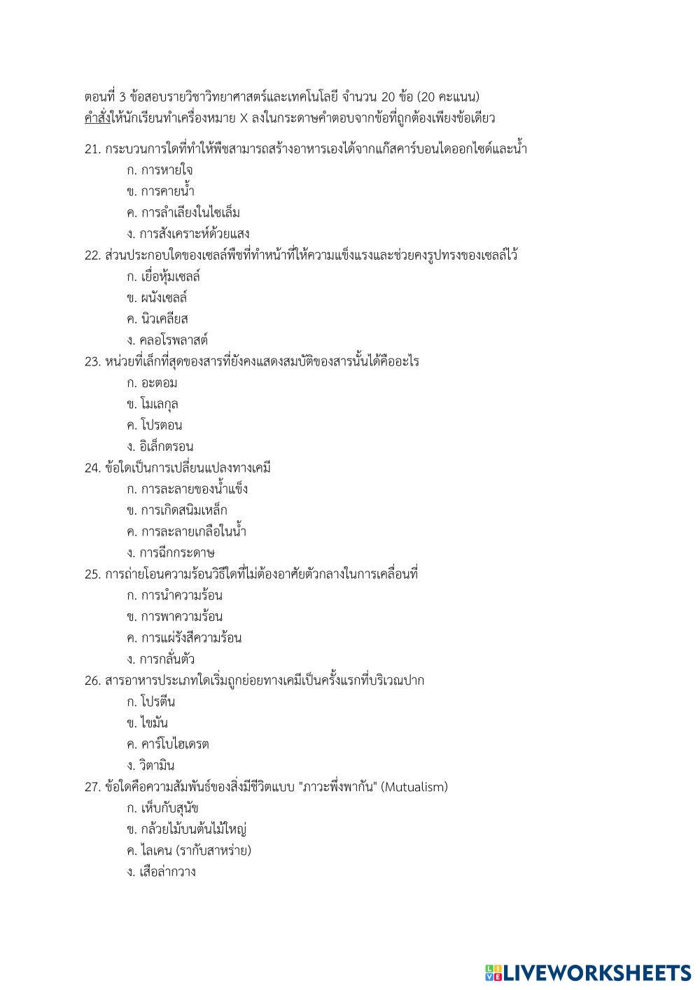 ตอนที่ 3 รายวิชาวิทยาศาสตร์ จำนวน 10 ข้อ (25 คะแนน)