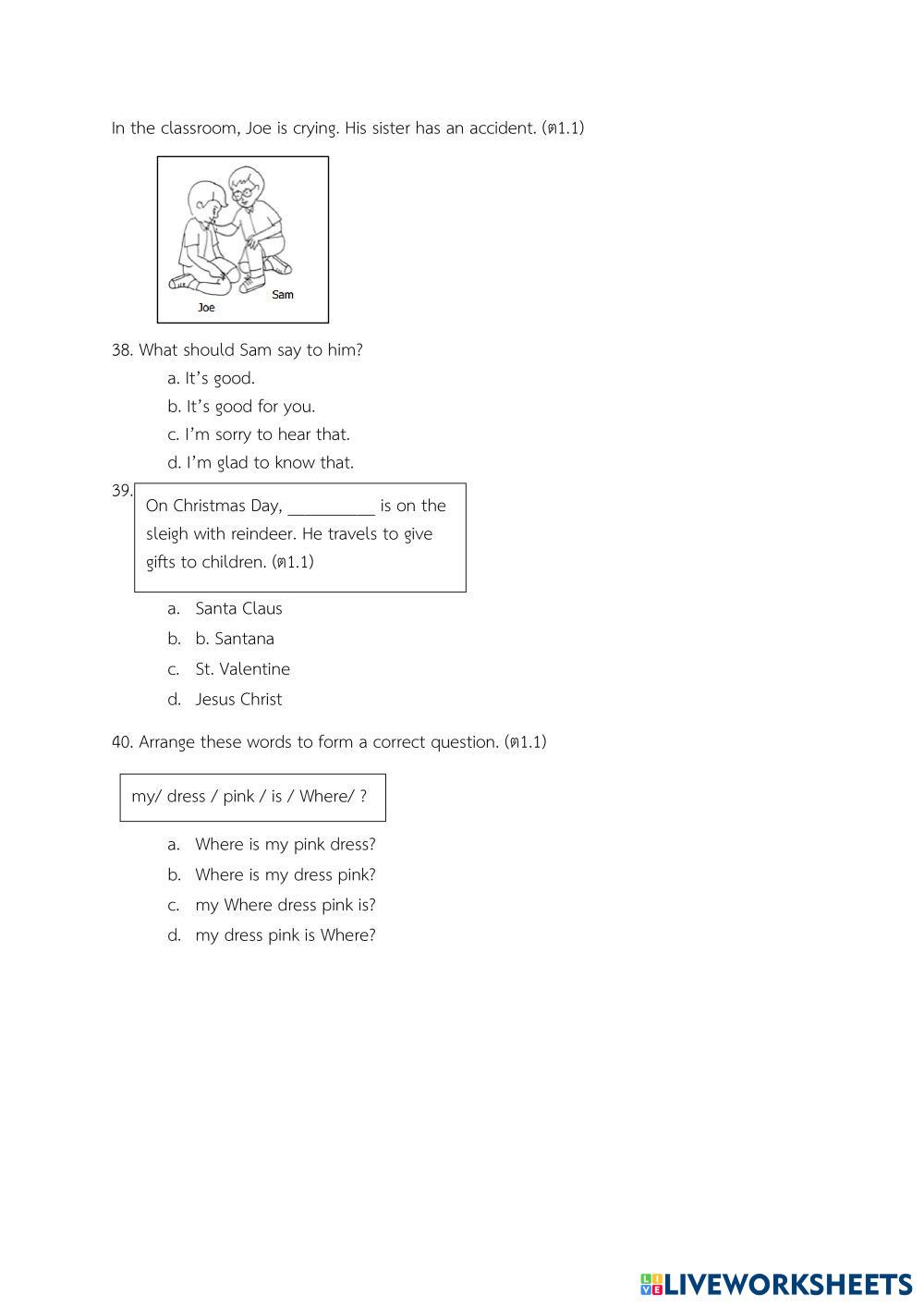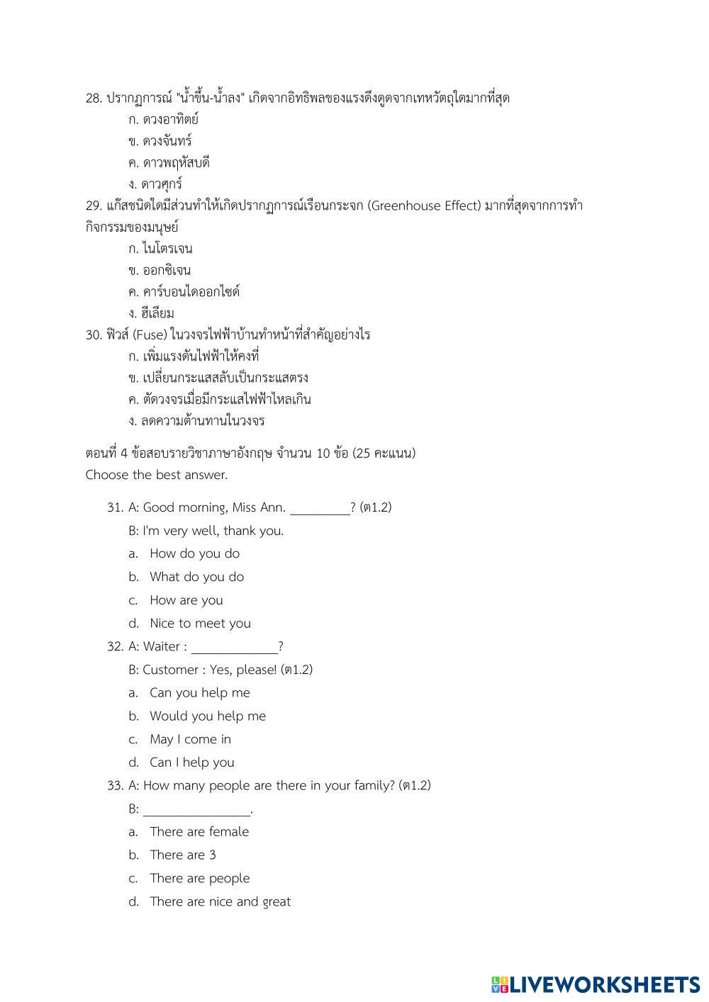 ตอนที่ 4 รายวิชาภาษาอังกฤษ จำนวน 10 ข้อ (25 คะแนน)