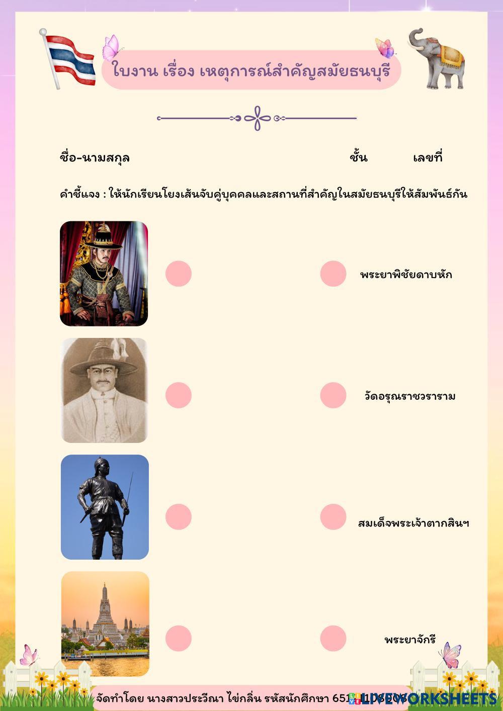 Created byPrawina Khaiklin ประวัติศาสตร์ไทย ประวัติศาสตร์ไทย Edad 13-14 level: ม.2 Thai Instrucciones del autor My Google Classroom Courses × 0 classes selected (0 students total) Quick Access Select all classes (0 classes) All Classes Loading courses... Cancelar Share Share to selected Course __COURSE_NAME__ __STUDENT_NAME__ (__STUDENT_EMAIL__) ใบงานประวัติศาสตร์สมัยธนบุรี Descargar Worksheet Validation Comprobar mis respuestas Emails my answers to my teacher Nombre completo Group/level Asignatura Teacher's email or key code Close Submit Validating worksheet... (12) Your answers have been sent to your teacher. Good luck! OK We encountered an error submitting your answers. Please try again. OK Anuncio | Ir sin anuncios Created byPrawina Khaiklin ประวัติศาสตร์ไทย ประวัติศาสตร์ไทย Edad 13-14 level: ม.2 Thai Instrucciones del autor