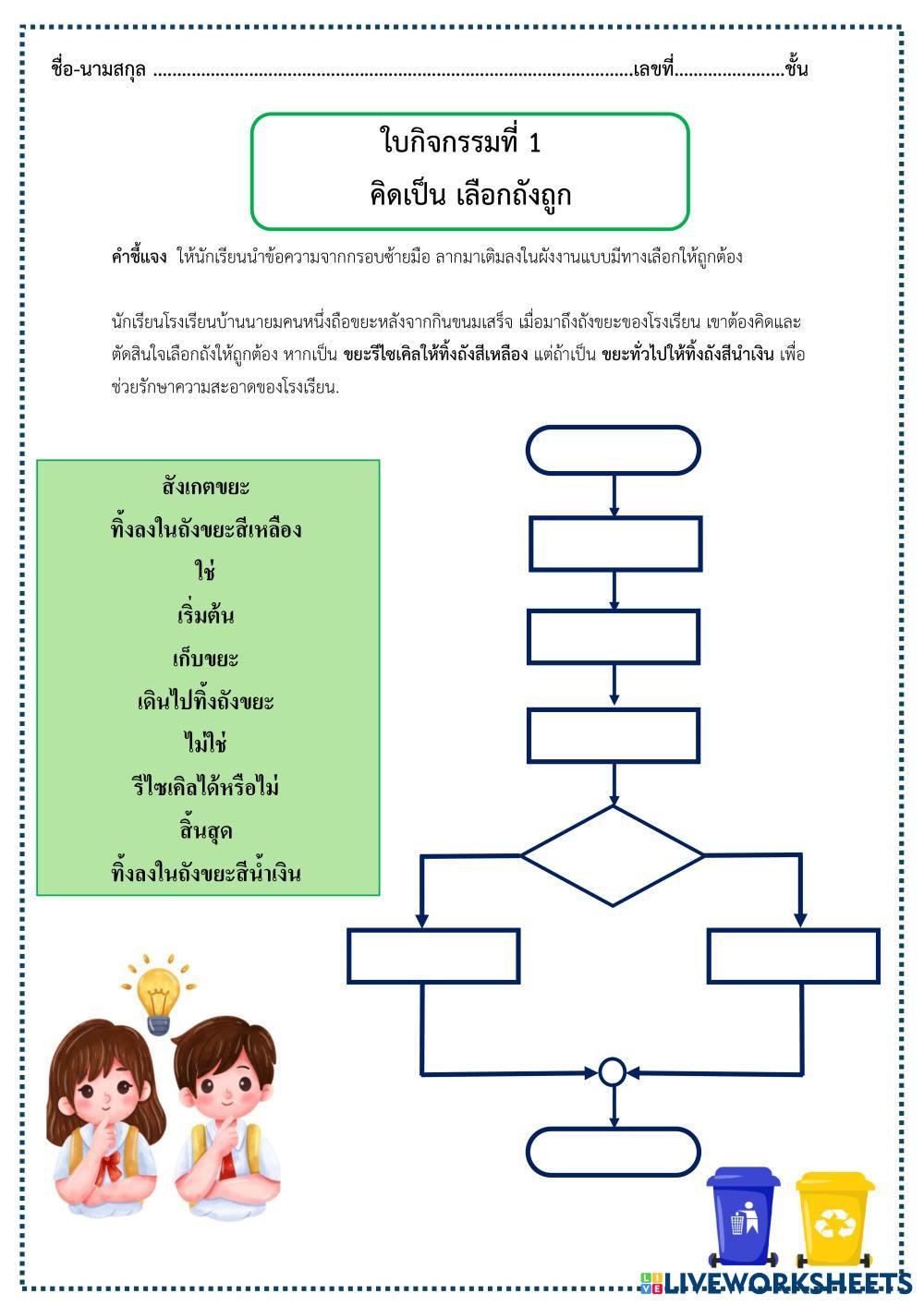 Created byNipon Laithong Ciencias Educación Primaria 5º de Primaria Ciencias Físicas Thai Instrucciones del autor ให้นักเรียนนำข้อความจากกรอบซ้ายมือ ลากมาเติมลงในผังงานแบบมีทางเลือกให้ถูกต้อง My Google Classroom Courses × 0 classes selected (0 students total) Quick Access Select all classes (0 classes) All Classes Loading courses... Cancelar Share Share to selected Course __COURSE_NAME__ __STUDENT_NAME__ (__STUDENT_EMAIL__) ใบงานกิจกรรมที่1 คิดเป็น เลือกถังถูก Descargar Worksheet Validation Comprobar mis respuestas Emails my answers to my teacher Nombre completo Group/level Asignatura Teacher's email or key code Close Submit Validating worksheet... (12) Your answers have been sent to your teacher. Good luck! OK We encountered an error submitting your answers. Please try again. OK Anuncio | Ir sin anuncios Created byNipon Laithong Ciencias Educación Primaria 5º de Primaria Ciencias Físicas Thai Instrucciones del autor ให้นักเรียนนำข้อความจากกรอบซ้ายมือ ลากมาเติมลงในผังงานแบบมีทางเลือกให้ถูกต้อง Explora las hojas de trabajo [6] 6年级设计与工艺——单元1: 妹妹的礼物 Science 5th grade [6] 6年级设计与工艺——单元1: 妹妹的礼物 Physical Science - Science 完成后点击: 1. Finish 2. Email my answers to my teacher 3. 输入Key code: BvdcvVZZAf TALLER DE APLICACIÓN - HISTORIA DE LA INFORMÁTICA Science 5th grade TALLER DE APLICACIÓN - HISTORIA DE LA INFORMÁTICA Physical Science - Science Realiza el siguiente taller Creación de un algoritmo Science 5th grade Creación de un algoritmo Physical Science - Science Coloca las fases de las siguientes acciones en el orden correcto TSP: MASS VS WEIGHT Science 5th grade TSP: MASS VS WEIGHT Physical Science - Science Complete the following worksheet: