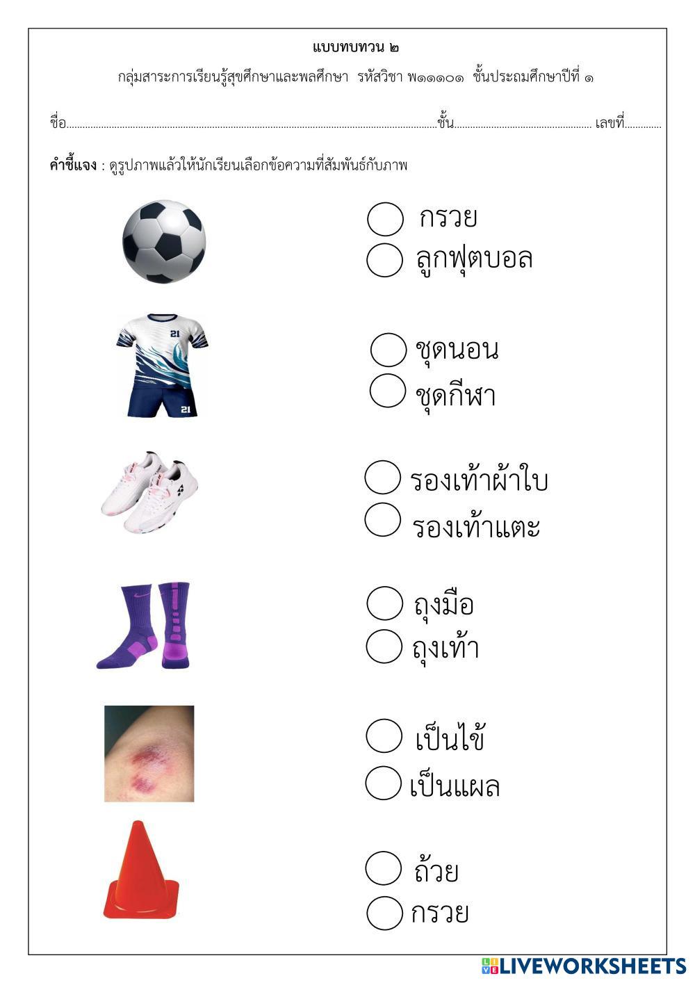 ให้นักเรียนดูภาพแล้วเลือกคำให้สัมพันธ์กับภาพ