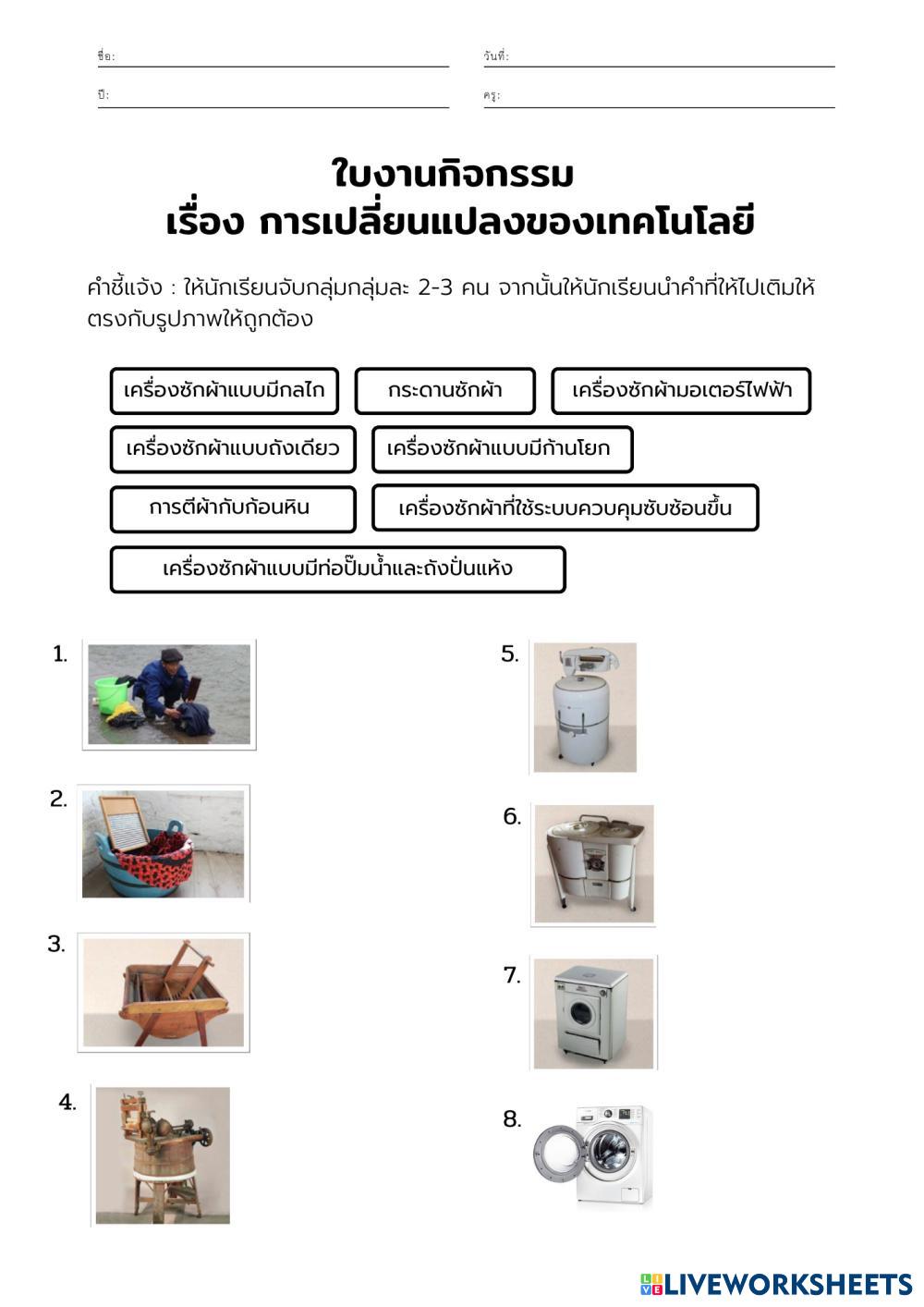 ใบงานกิจกรรม เรื่อง การเปลี่ยนแปลงของเทคโนโลยี