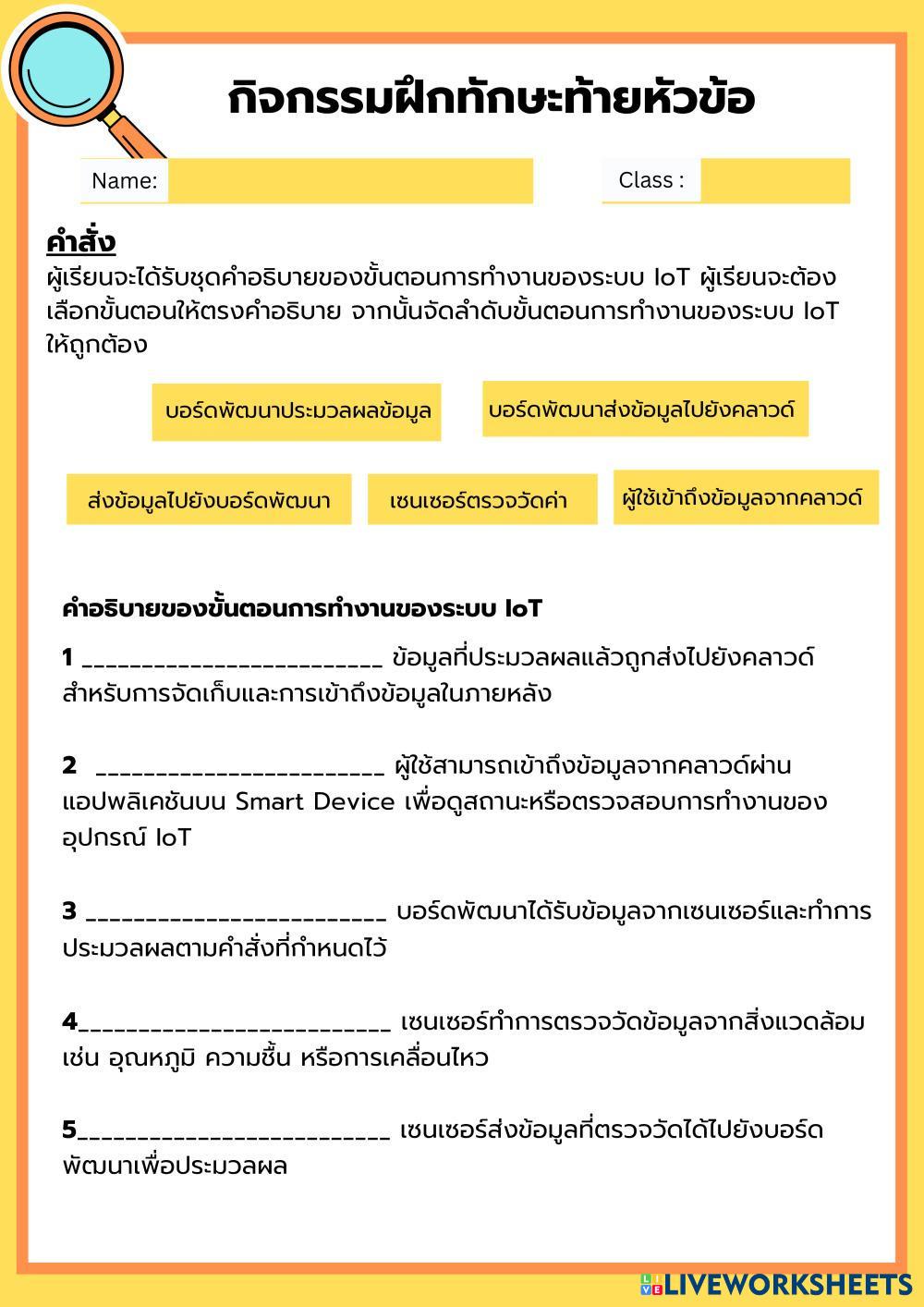 Created by Parinnapat technology Technology Edad 17+ level: 2 Thai Instrucciones del autor My Google Classroom Courses × 0 classes selected (0 students total) Quick Access Select all classes (0 classes) All Classes Loading courses... Cancelar Share Share to selected Course __COURSE_NAME__ __STUDENT_NAME__ (__STUDENT_EMAIL__) แบบฝึกปฏิบัติ2.1 Descargar Worksheet Validation Comprobar mis respuestas Emails my answers to my teacher Nombre completo Group/level Asignatura Teacher's email or key code Close Submit Validating worksheet... (12) Your answers have been sent to your teacher. Good luck! OK We encountered an error submitting your answers. Please try again. OK Anuncio | Ir sin anuncios Created by Parinnapat technology Technology Edad 17+ level: 2 Thai Instrucciones del autor