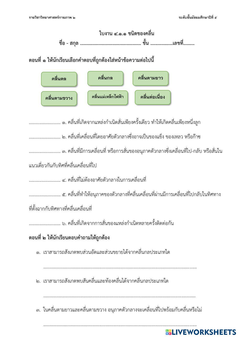 Created byชลธิชา บุญยะกลัมพะ วิทยาศาสตร์กายภาพ ๒ บทที่ ๔ คลื่นกล Edad 17+ level: ม.๕ Thai Instrucciones del autor My Google Classroom Courses × 0 classes selected (0 students total) Quick Access Select all classes (0 classes) All Classes Loading courses... Cancelar Share Share to selected Course __COURSE_NAME__ __STUDENT_NAME__ (__STUDENT_EMAIL__) ใบงาน ๔.๑.๑ เรื่องชนิดของคลื่น Descargar Worksheet Validation Comprobar mis respuestas Emails my answers to my teacher Nombre completo Group/level Asignatura Teacher's email or key code Close Submit Validating worksheet... (12) Your answers have been sent to your teacher. Good luck! OK We encountered an error submitting your answers. Please try again. OK Anuncio | Ir sin anuncios Created byชลธิชา บุญยะกลัมพะ วิทยาศาสตร์กายภาพ ๒ บทที่ ๔ คลื่นกล Edad 17+ level: ม.๕ Thai Instrucciones del autor