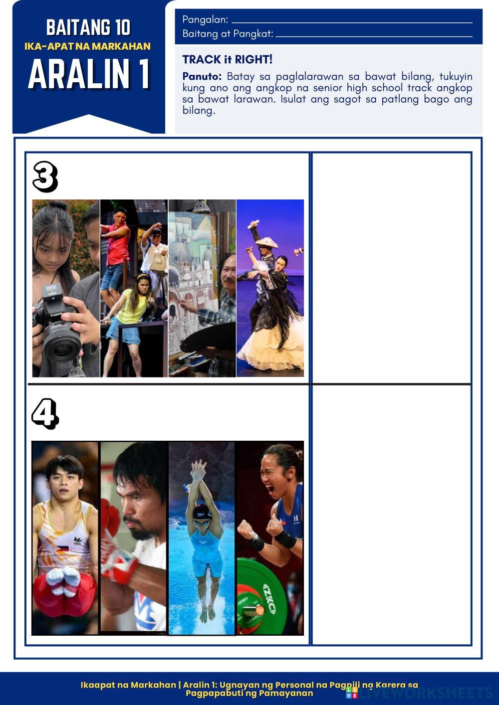 Batay sa paglalarawan sa bawat bilang, tukuyin kung ano ang angkop na senior high school track angkop sa bawat larawan. Isulat ang sagot sa patlang bago ang bilang.