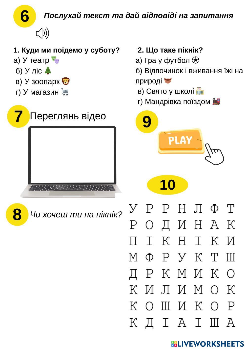 Created by 14956 Lengua y Literatura Educación Primaria 3º de Primaria Gramática Ukrainian Instrucciones del autor За посібником Пономаренко My Google Classroom Courses × 0 classes selected (0 students total) Quick Access Select all classes (0 classes) All Classes Loading courses... Cancelar Share Share to selected Course __COURSE_NAME__ __STUDENT_NAME__ (__STUDENT_EMAIL__) Дієслово Descargar Worksheet Validation Comprobar mis respuestas Emails my answers to my teacher Nombre completo Group/level Asignatura Teacher's email or key code Close Submit Validating worksheet... (12) Your answers have been sent to your teacher. Good luck! OK We encountered an error submitting your answers. Please try again. OK Anuncio | Ir sin anuncios Created by 14956 Lengua y Literatura Educación Primaria 3º de Primaria Gramática Ukrainian Instrucciones del autor За посібником Пономаренко Explora las hojas de trabajo PU3_U5 English Language 3rd grade PU3_U5 Grammar - English Language Homework Everybody up 2 Unit 4 test English Language 3rd grade Everybody up 2 Unit 4 test Grammar - English Language English Дієслова English Language 3rd grade Дієслова Grammar - English Language 3 PU3_U6_Class Stars English Language 3rd grade PU3_U6_Class Stars Grammar - English Language Homework
