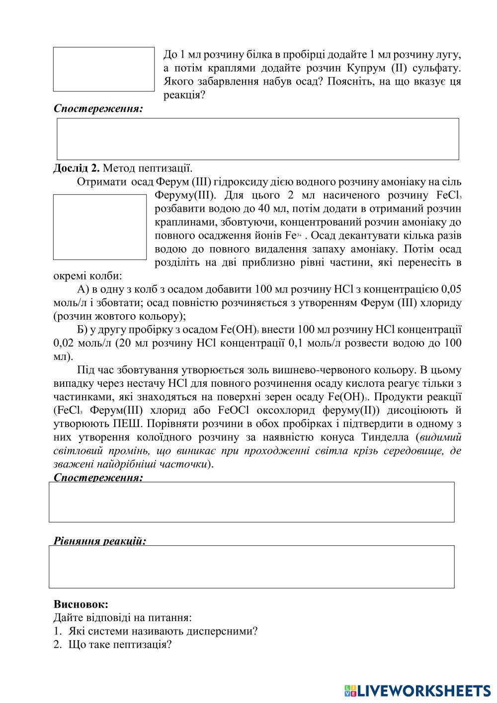 Дана лабораторна робота допоможе вам закріпити знання про ВМС на прикладі білків лабораторним способом, а також практично довести стійкість розчинів ВМС та вплив різних факторів на пептизацію.