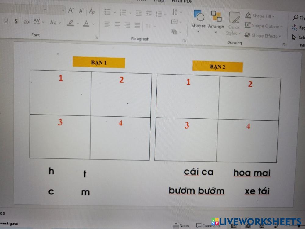 Created byTRAN THUY bai tap tim chu Edad 5-10 level: 1 Vietnamese Instrucciones del autor My Google Classroom Courses × 0 classes selected (0 students total) Quick Access Select all classes (0 classes) All Classes Loading courses... Cancelar Share Share to selected Course __COURSE_NAME__ __STUDENT_NAME__ (__STUDENT_EMAIL__) chu viet Descargar Worksheet Validation Comprobar mis respuestas Emails my answers to my teacher Nombre completo Group/level Asignatura Teacher's email or key code Close Submit Validating worksheet... (12) Your answers have been sent to your teacher. Good luck! OK We encountered an error submitting your answers. Please try again. OK Anuncio | Ir sin anuncios Created byTRAN THUY bai tap tim chu Edad 5-10 level: 1 Vietnamese Instrucciones del autor