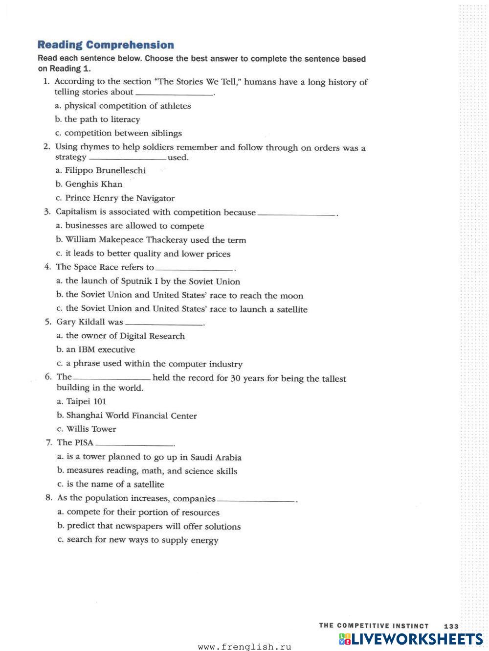 Created byha EFFL Reading123 Edad 9-16 level: inter Vietnamese Instrucciones del autor My Google Classroom Courses × 0 classes selected (0 students total) Quick Access Select all classes (0 classes) All Classes Loading courses... Cancelar Share Share to selected Course __COURSE_NAME__ __STUDENT_NAME__ (__STUDENT_EMAIL__) IR3-U9 Descargar Worksheet Validation Comprobar mis respuestas Emails my answers to my teacher Nombre completo Group/level Asignatura Teacher's email or key code Close Submit Validating worksheet... (12) Your answers have been sent to your teacher. Good luck! OK We encountered an error submitting your answers. Please try again. OK Anuncio | Ir sin anuncios Created byha EFFL Reading123 Edad 9-16 level: inter Vietnamese Instrucciones del autor