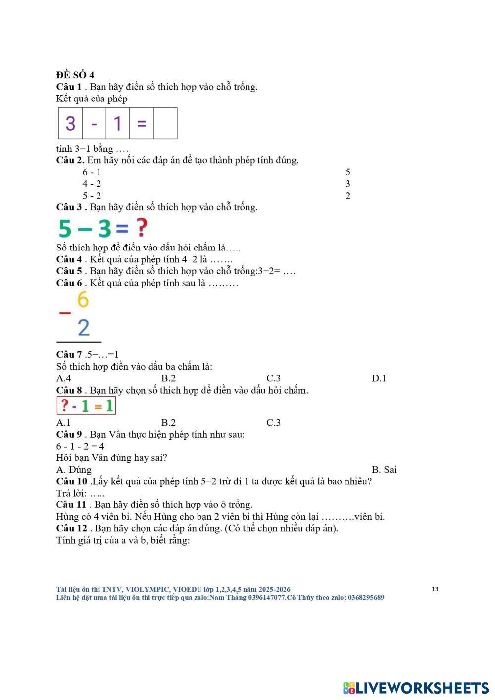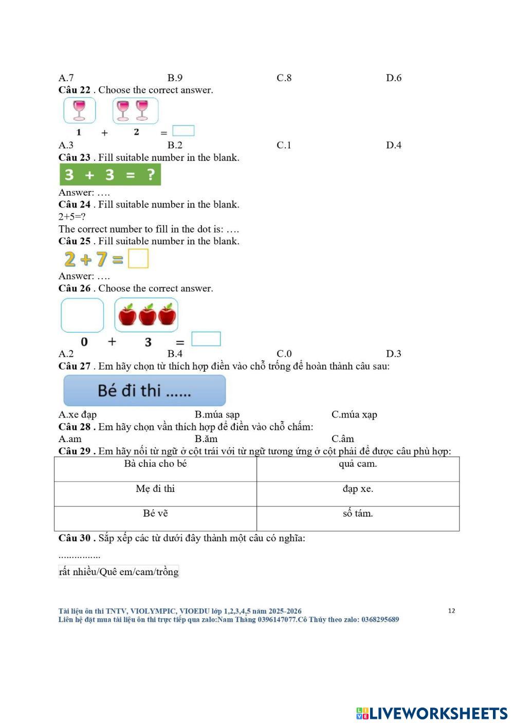 Created by namphan ESL Vietnamese A1 (Principiante) Vocabulario Vietnamese Instrucciones del autor lớp 1 My Google Classroom Courses × 0 classes selected (0 students total) Quick Access Select all classes (0 classes) All Classes Loading courses... Cancelar Share Share to selected Course __COURSE_NAME__ __STUDENT_NAME__ (__STUDENT_EMAIL__) đề 1 cấp huyện Descargar Worksheet Validation Comprobar mis respuestas Emails my answers to my teacher Nombre completo Group/level Asignatura Teacher's email or key code Close Submit Validating worksheet... (12) Your answers have been sent to your teacher. Good luck! OK We encountered an error submitting your answers. Please try again. OK Anuncio | Ir sin anuncios Created by namphan ESL Vietnamese A1 (Principiante) Vocabulario Vietnamese Instrucciones del autor lớp 1 Explora las hojas de trabajo tìm chữ còn thiếu ESL A1 tìm chữ còn thiếu Vocabulary - ESL điền chữ h,k TV ESL A1 TV Vocabulary - ESL TVA1 kể chuyện - Vinh và chiếc gối mèo ESL A1 kể chuyện - Vinh và chiếc gối mèo Vocabulary - ESL LTVC - Bài 4 ESL A1 LTVC - Bài 4 Vocabulary - ESL Học sinh thực hiện kéo thả chọn từ ngữ thay thế cho từ in đậm để liên kế các câu trong đoạn văn cho sẵn