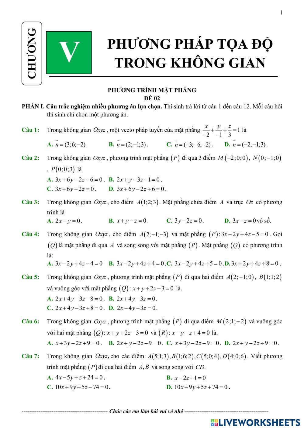 Created byLê Thị Hồng Vân Matemáticas Bachillerato 2º de Bachillerato Álgebra Vietnamese Instrucciones del autor Các em làm đề luyện tập nhé My Google Classroom Courses × 0 classes selected (0 students total) Quick Access Select all classes (0 classes) All Classes Loading courses... Cancelar Share Share to selected Course __COURSE_NAME__ __STUDENT_NAME__ (__STUDENT_EMAIL__) PHƯƠNG TRÌNH MẶT PHẲNG 2 Descargar Worksheet Validation Comprobar mis respuestas Emails my answers to my teacher Nombre completo Group/level Asignatura Teacher's email or key code Close Submit Validating worksheet... (12) Your answers have been sent to your teacher. Good luck! OK We encountered an error submitting your answers. Please try again. OK Anuncio | Ir sin anuncios Created byLê Thị Hồng Vân Matemáticas Bachillerato 2º de Bachillerato Álgebra Vietnamese Instrucciones del autor Các em làm đề luyện tập nhé Explora las hojas de trabajo GTLN và GTNN 2 Math 12th grade GTLN và GTNN 2 Algebra - Math Các em làm đề luyện tập nhé GTLN và GTNN 1 Math 12th grade GTLN và GTNN 1 Algebra - Math Các em làm đề luyện tập nhé ĐƠN ĐIỆU VÀ CỰC TRỊ 1 Math 12th grade ĐƠN ĐIỆU VÀ CỰC TRỊ 1 Algebra - Math Các em làm đề luyện tập nhé ĐƠN ĐIỆU VÀ CỰC TRỊ 2 Math 12th grade ĐƠN ĐIỆU VÀ CỰC TRỊ 2 Algebra - Math Các em làm đề luyện tập nhé