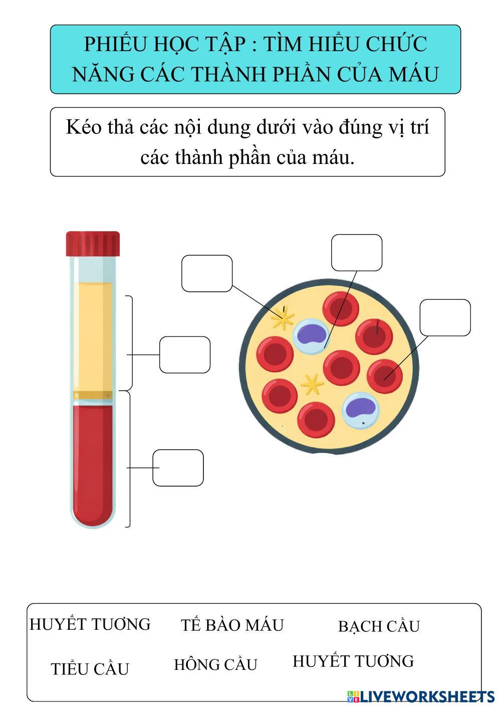 Kéo tên các thành phần của máu vào đúng vị trí trên hình ảnh.
